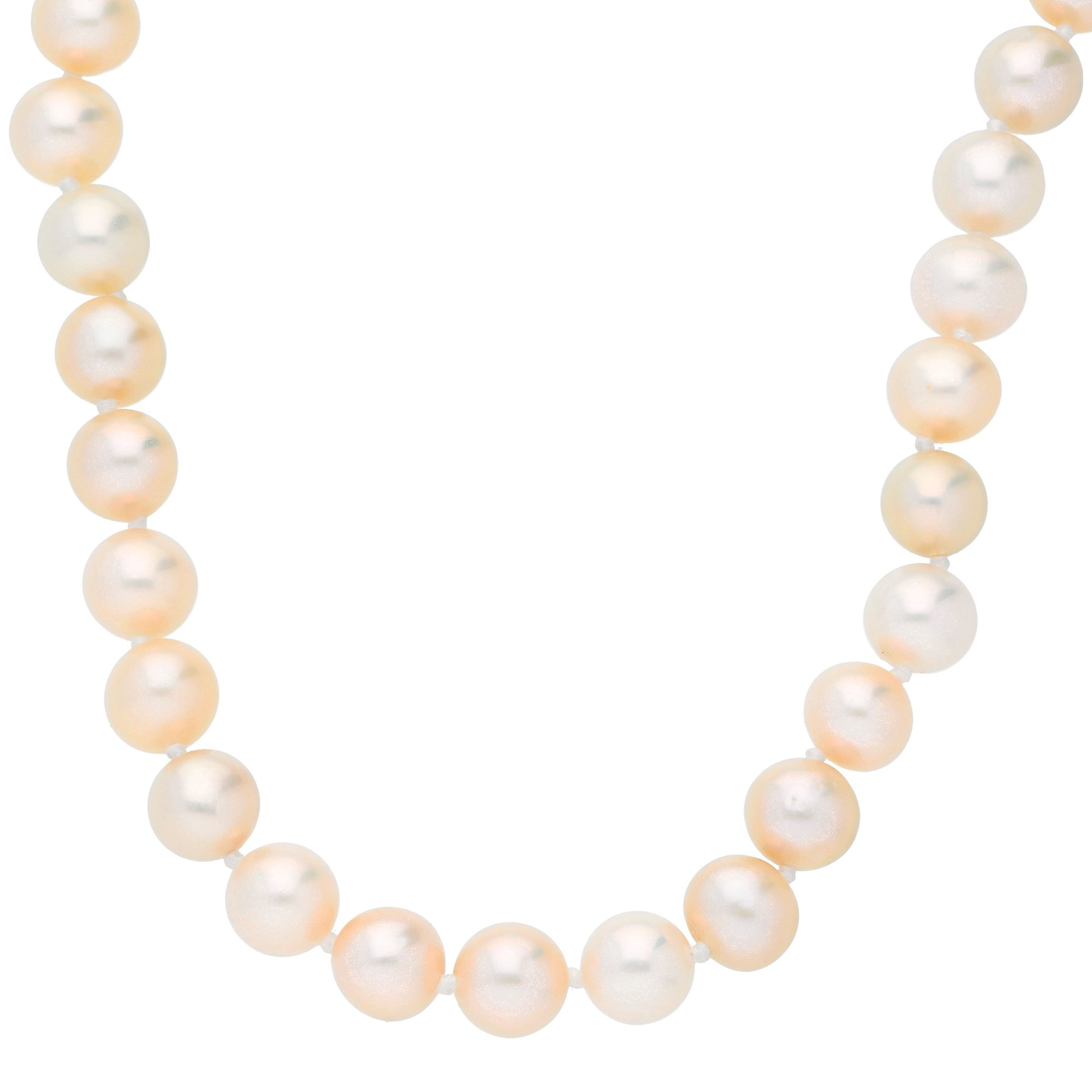 Elevate your style with our 14ct Gold Pearl Necklace, where elegance meets timeless design. Strung with cream freshwater pearls, this necklace promises a smooth and consistent finish, radiating a soft, opulent glow. The clasp, crafted in yellow gold and shaped like a delicate leaf, provides a secure and stylish closure that complements the natural beauty of the pearls. This pearl necklace is ideal for those who value classic style with a distinctive touch. It’s versatile enough for both formal events and casual gatherings, making it a must-have for any jewellery lover. Add this exquisite piece to your collection to bring a hint of classic glamour to your wardrobe.