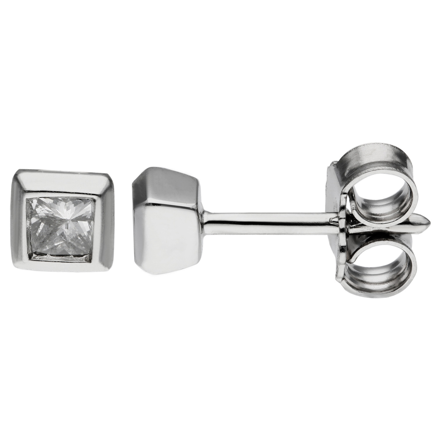 Discover the refined beauty of our 18ct White Gold 0.20ct Diamond Earrings, crafted for women who value elegance. These exquisite stud earrings feature bezel set princess cut diamonds, providing a modern twist on classic solitaire earrings. The total carat weight of 0.20ct ensures a dazzling sparkle that enhances any look.