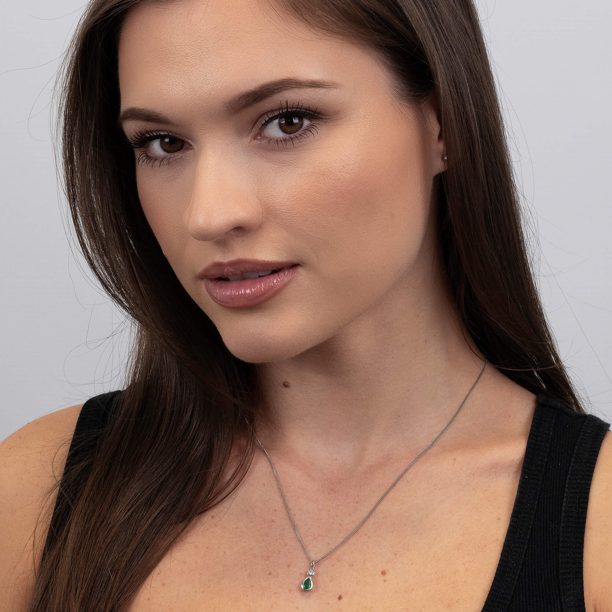 18ct White Gold Diamond & 0.38ct Emerald Pendant