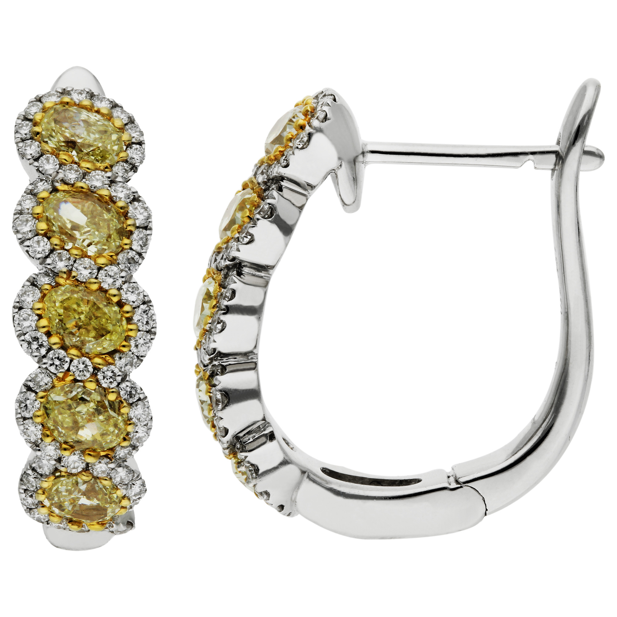 18ct White Gold 1.32 Yellow Diamond Hoop Earrings
