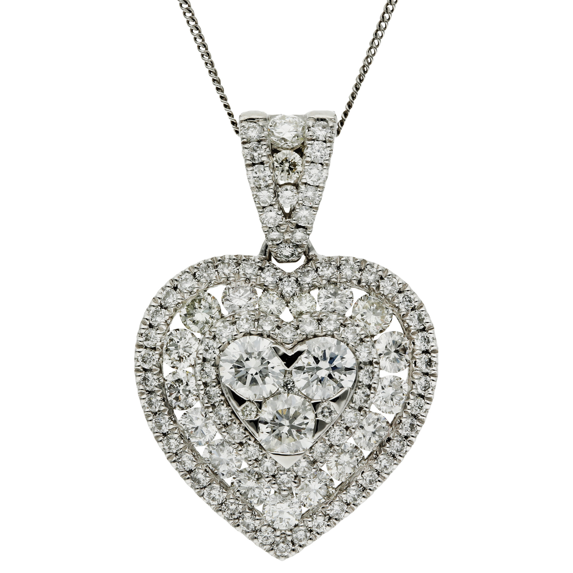 18ct White Gold 1.40ct Diamond Heart Pendant