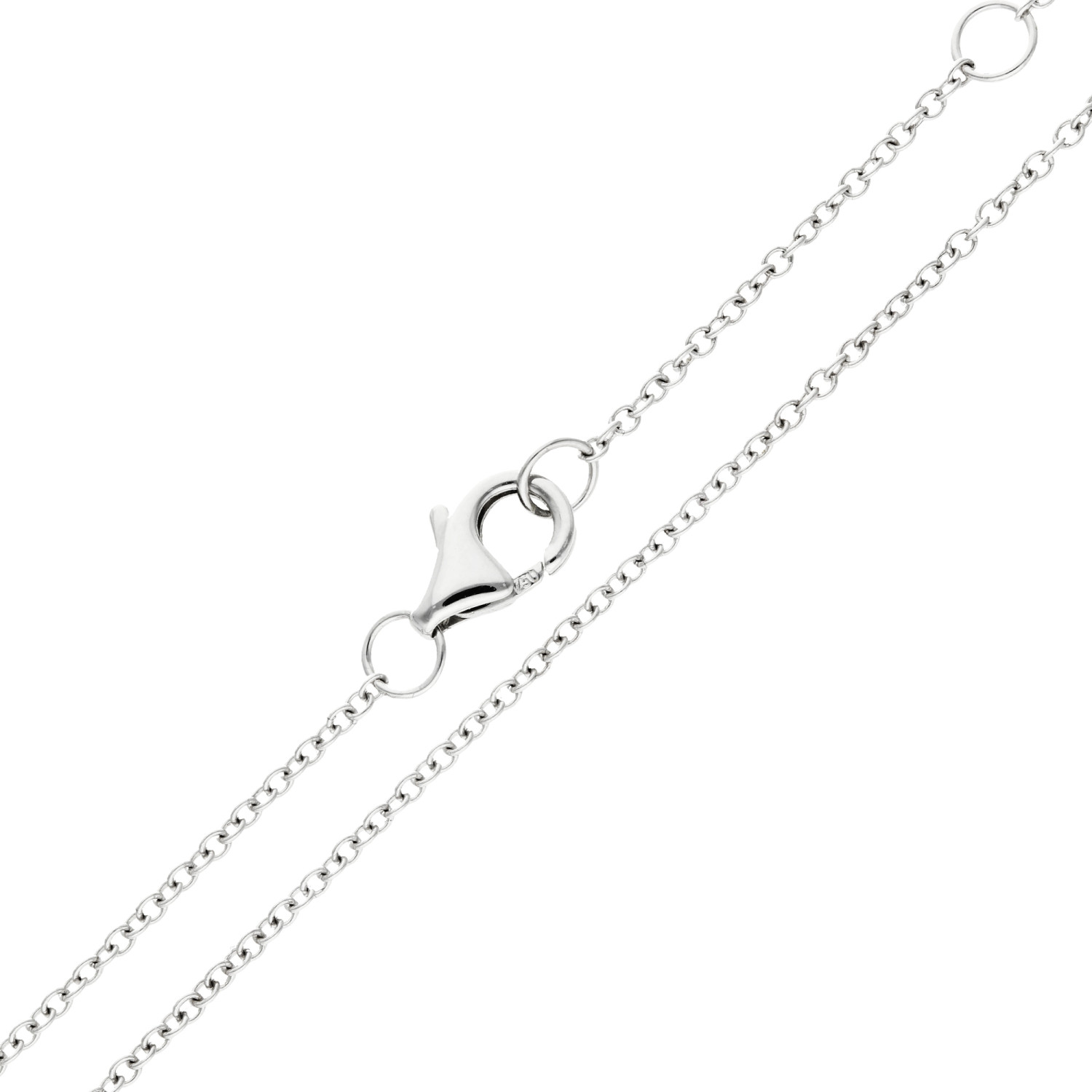 Crafted with meticulous attention to detail, this pendant boasts three articulated sections, ensuring fluid movement and a captivating display of light with every step. The inclusion of an 18ct white gold trace chain complements the pendant's refined design, offering a secure and stylish finish.