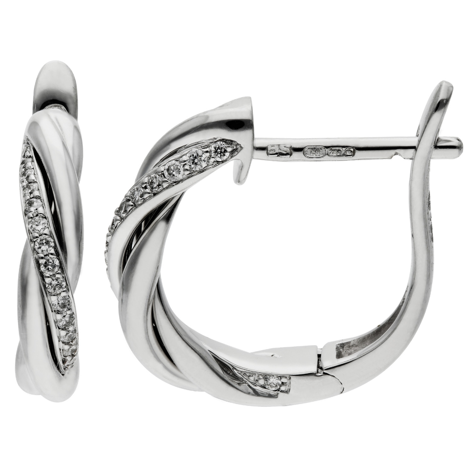 Step into luxury with our exquisite 18ct White Gold & Diamond Hoop Earrings. These beautifully crafted earrings feature a captivating twist design, embedded with tiny, glittering diamonds that catch the light from every angle. Set in high-quality 18ct white gold, these hoops offer a modern twist on a classic style, blending elegance with contemporary flair.