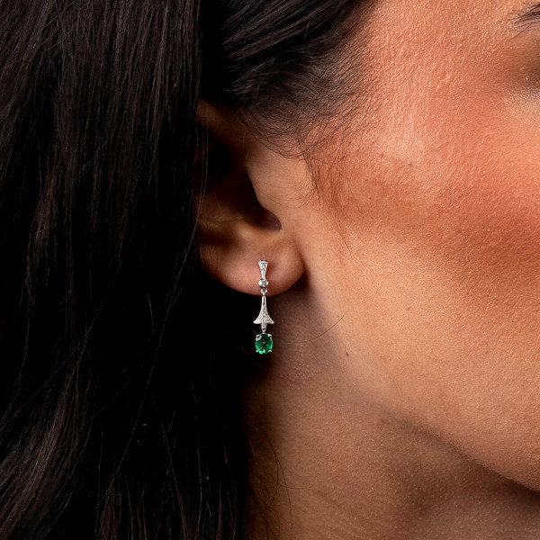 18ct White Gold Emerald Drop Earrings