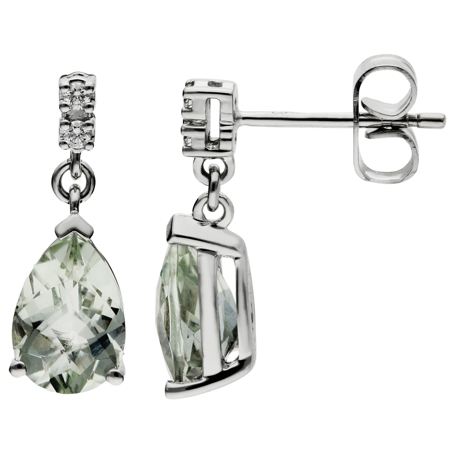 18ct White Gold Diamond & 2.30ct Green Amethyst Earrings