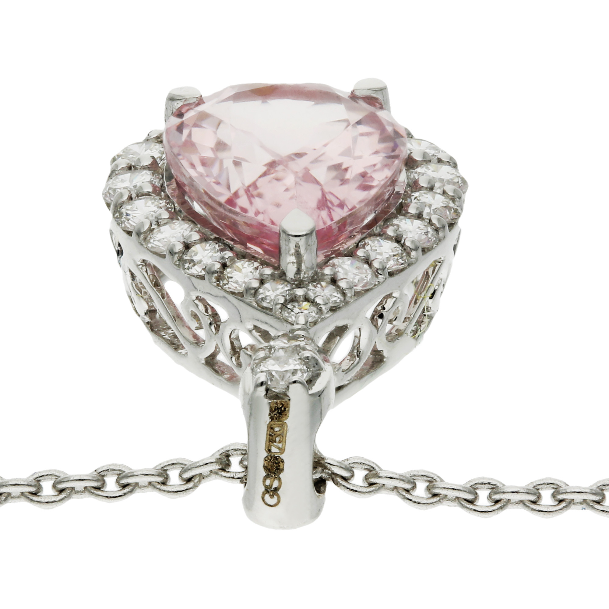 18ct White Gold Diamond & 1.26ct Morganite Pendant