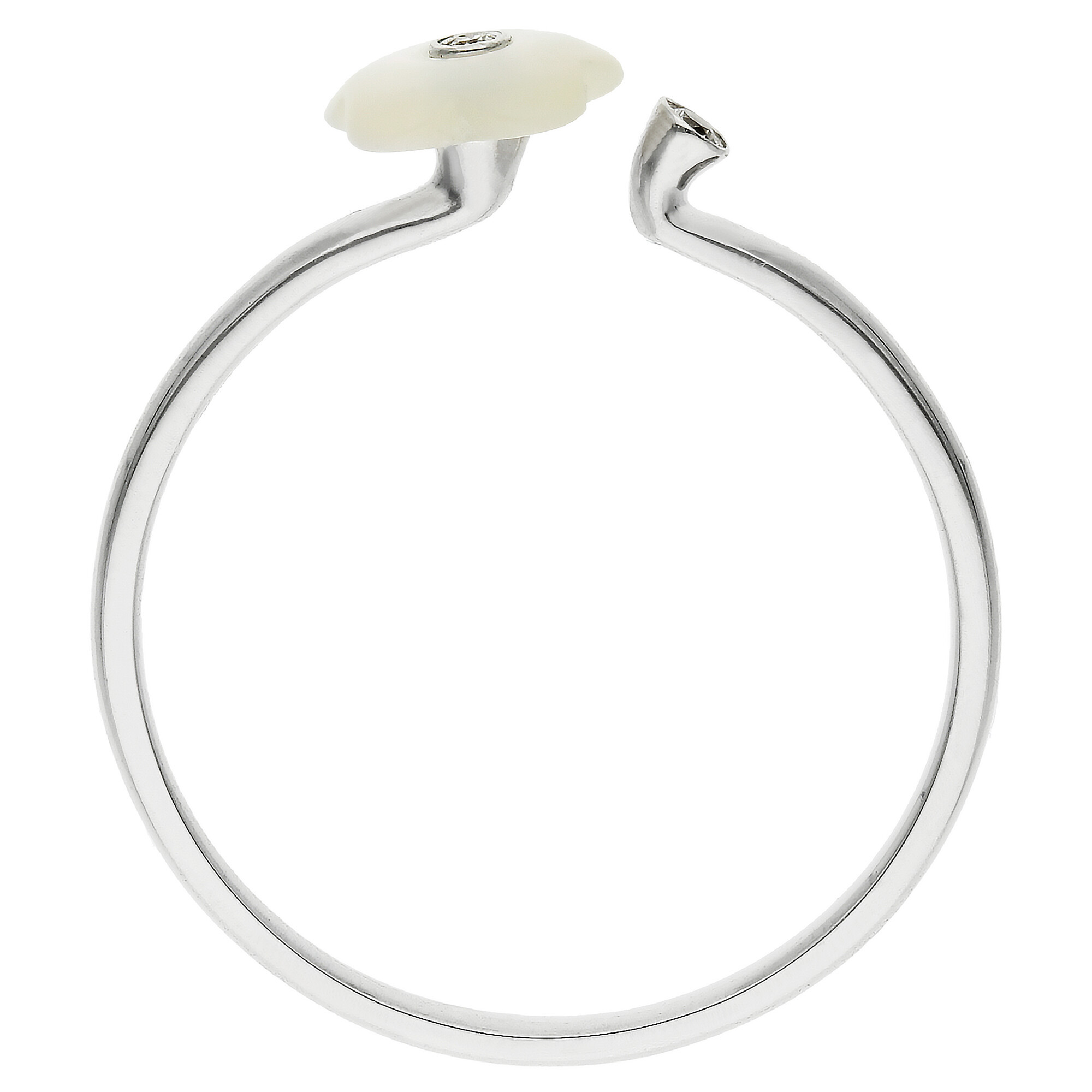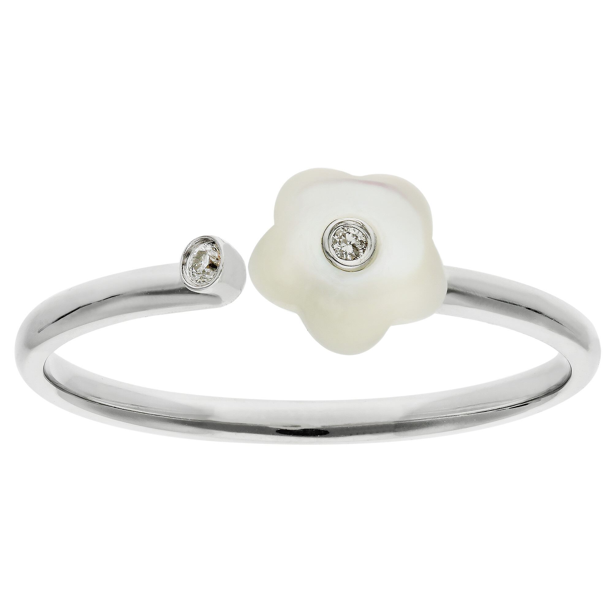 Embrace the delicate charm of the Alyssum Collection with this exquisite 18ct White Gold Diamond & Mother of Pearl Ring, designed by Fei Liu. Inspired by the soft clusters of alyssum flowers, this enchanting ring symbolises beauty and strength. The open design showcases a radiant mother of pearl blossom, highlighted by a tiny central diamond, while a second diamond at the opposite end adds a subtle sparkle. Set in luxurious 18ct white gold, this ring exudes sophistication and grace. Whether chosen as a thoughtful gift or a personal indulgence, its timeless elegance makes it a versatile piece for any jewellery collection. Perfect for both everyday wear and special occasions, this ring is a captivating expression of modern femininity.