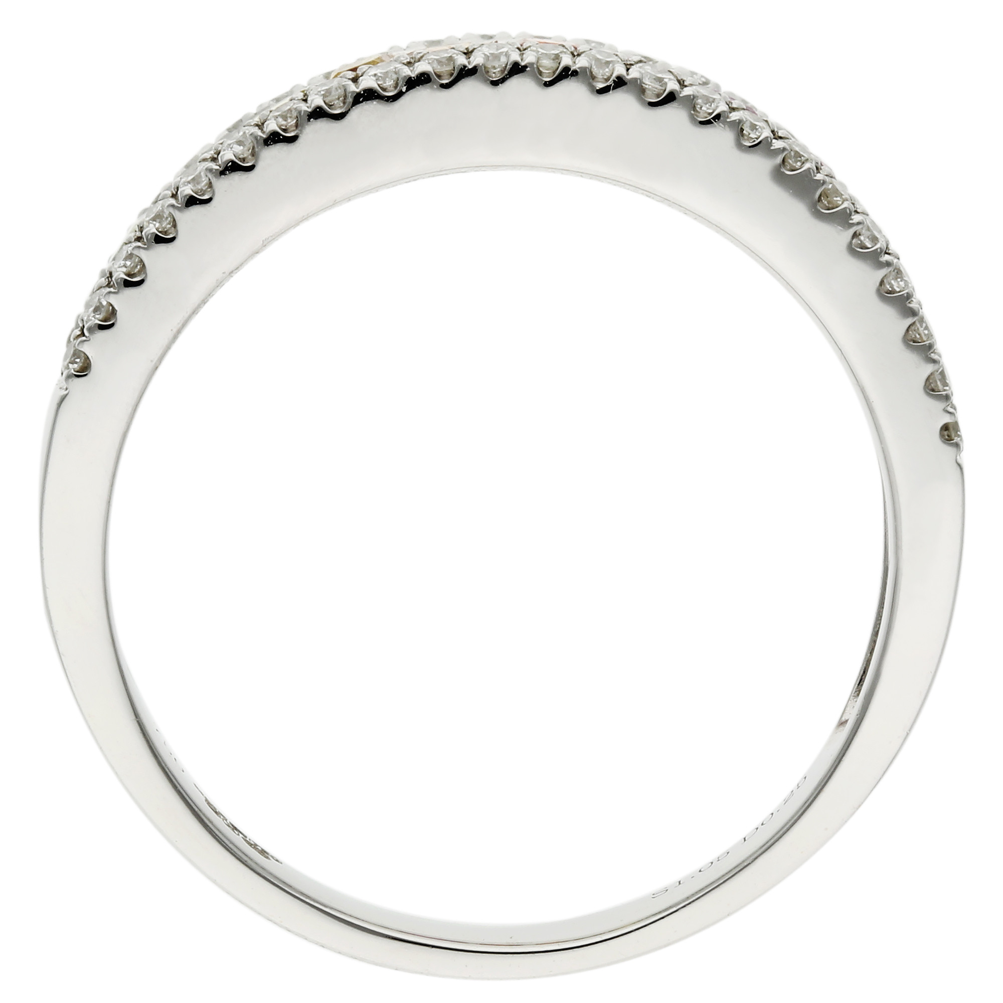 Add a burst of colour to your jewellery collection with this exquisite 18ct White Gold Diamond and Sapphire Ring. Designed in a half eternity style, this piece features a row of square cut rainbow coloured sapphires, beautifully complemented by shimmering round brilliant cut diamonds set along both edges.
