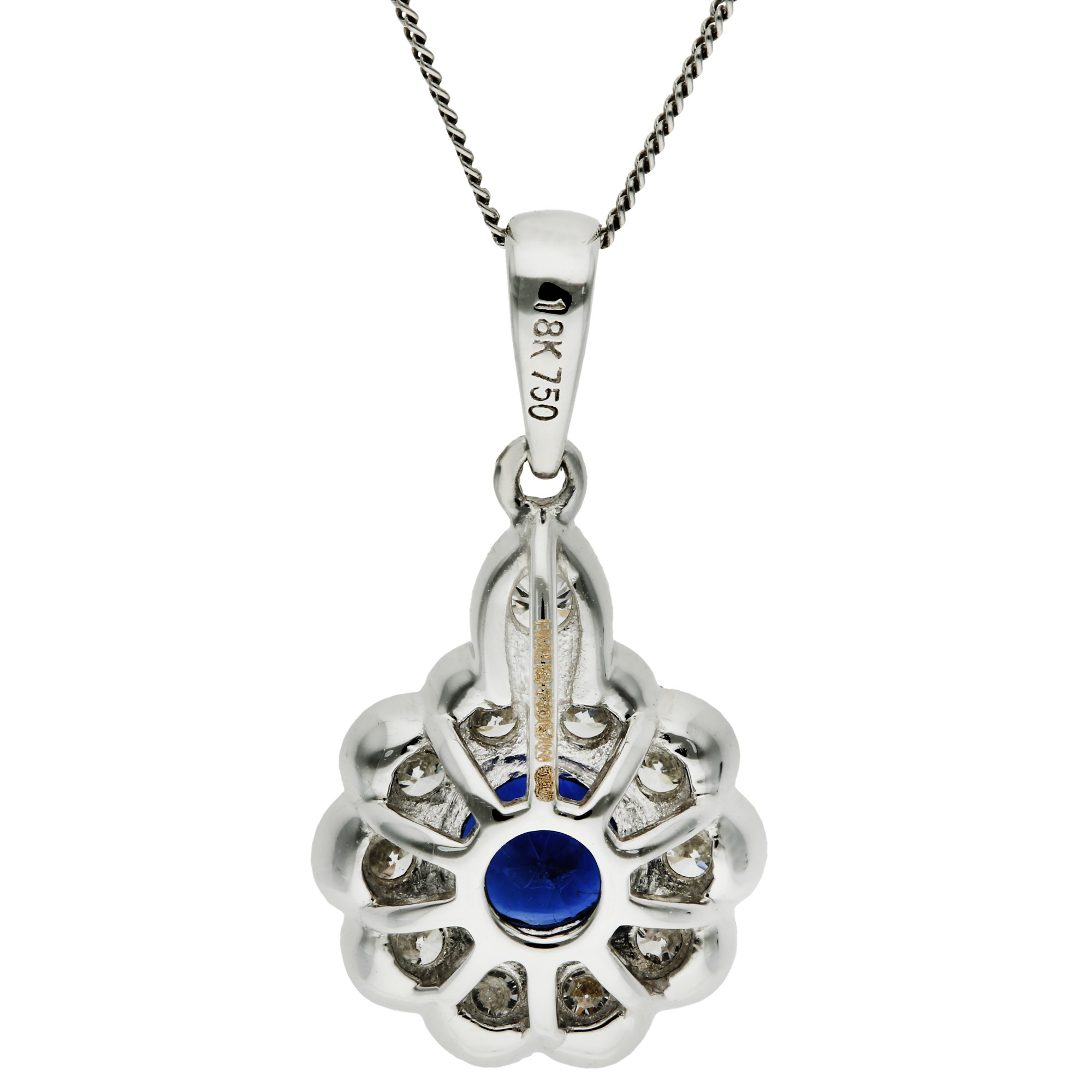 18ct White Gold Diamond & 0.68ct Sapphire Pendant
