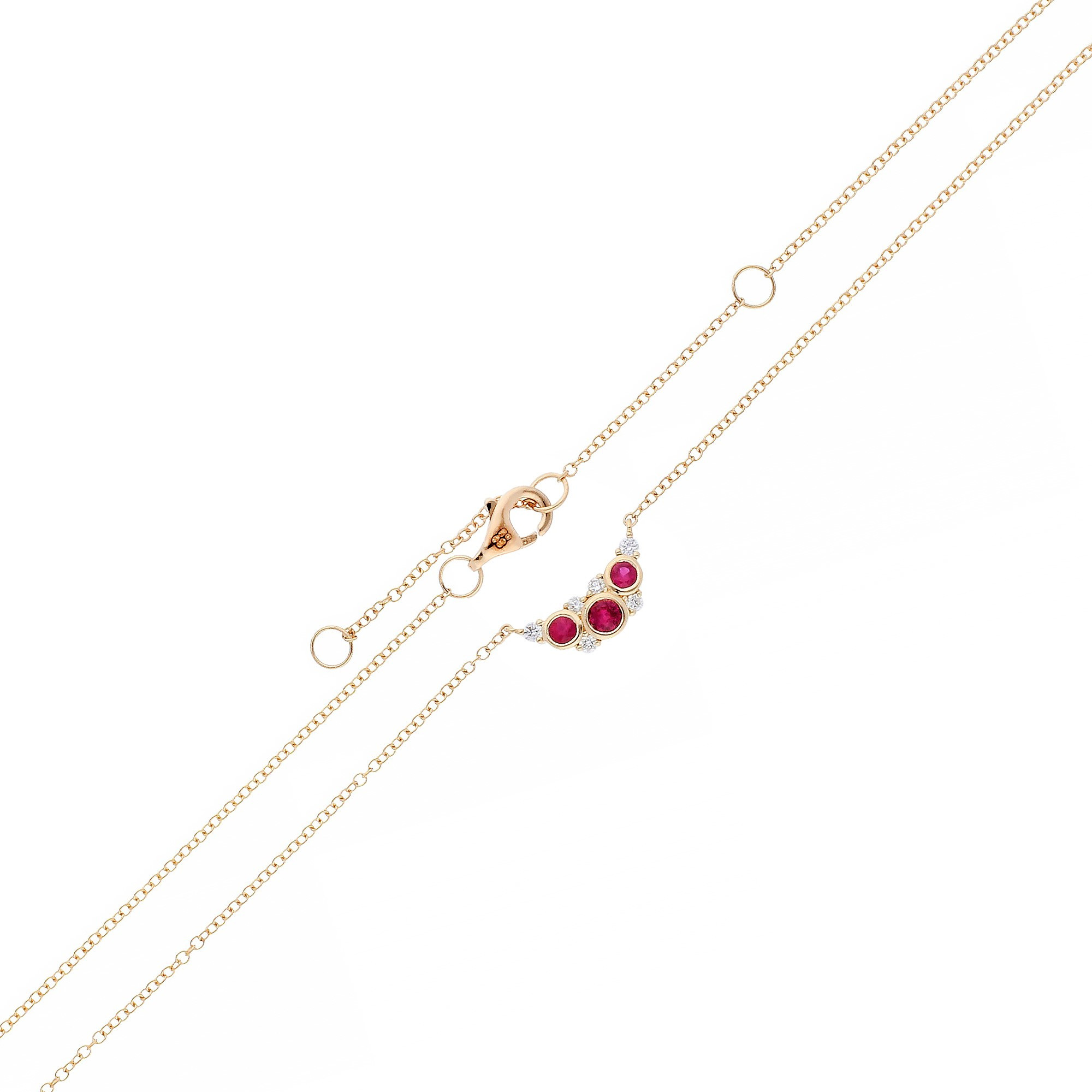 Designed for both everyday wear and special occasions, the necklace combines high quality craftsmanship with a timeless aesthetic. Whether as a gift or a personal treat, this ruby and diamond necklace is a versatile and luxurious piece that will be treasured for a lifetime.