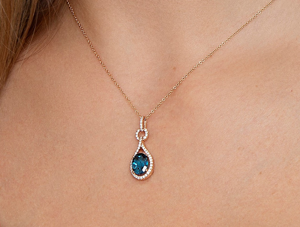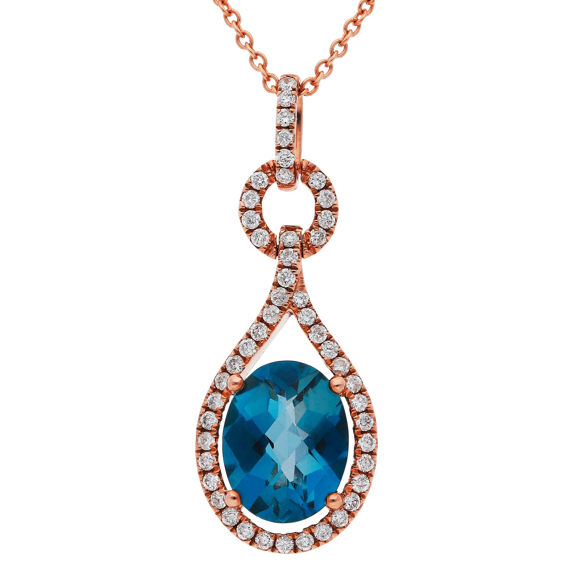 9ct Rose Gold Diamond & 2.0ct London Blue Topaz Pendant