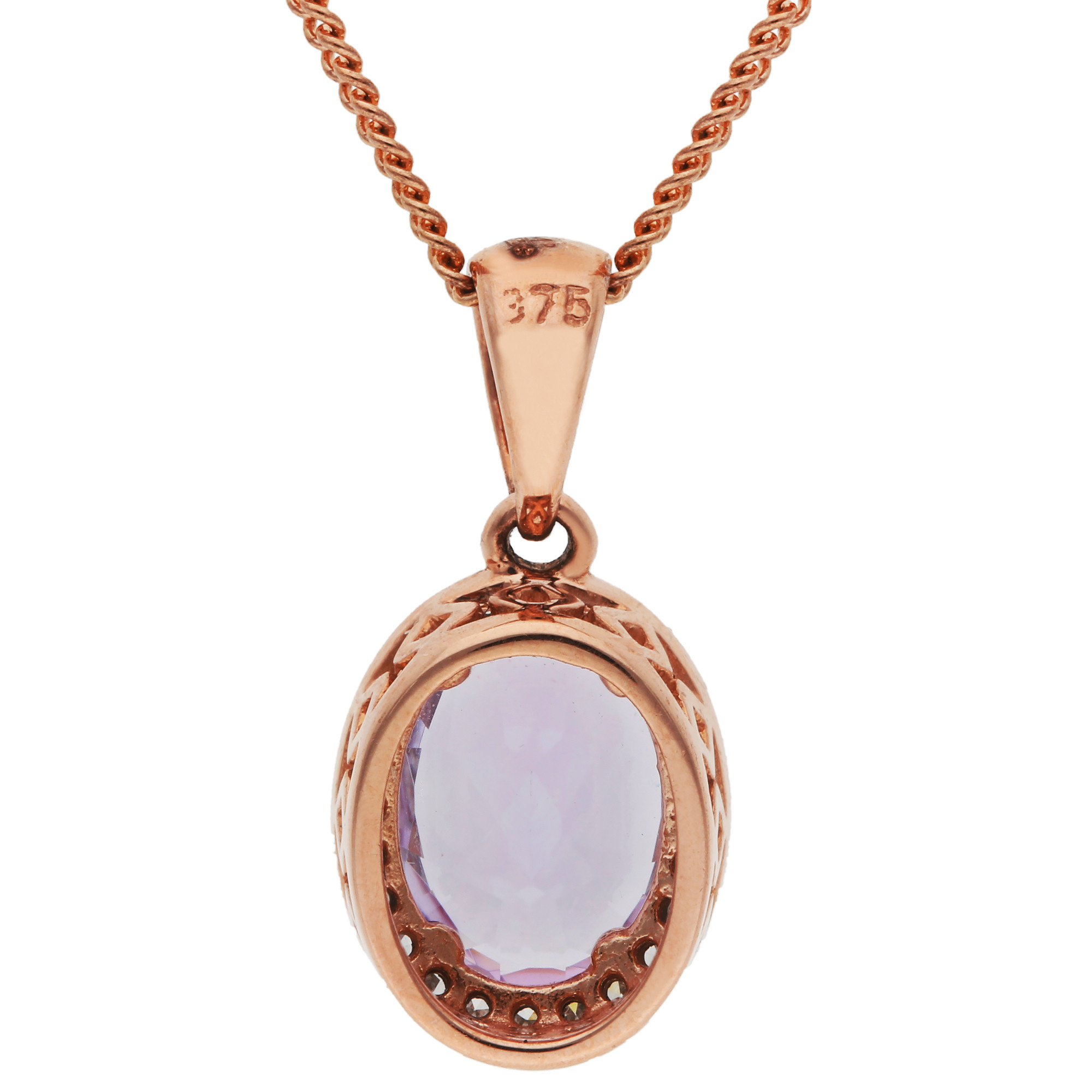 9ct Rose Gold Diamond & 1.00ct Pink Amethyst Pendant
