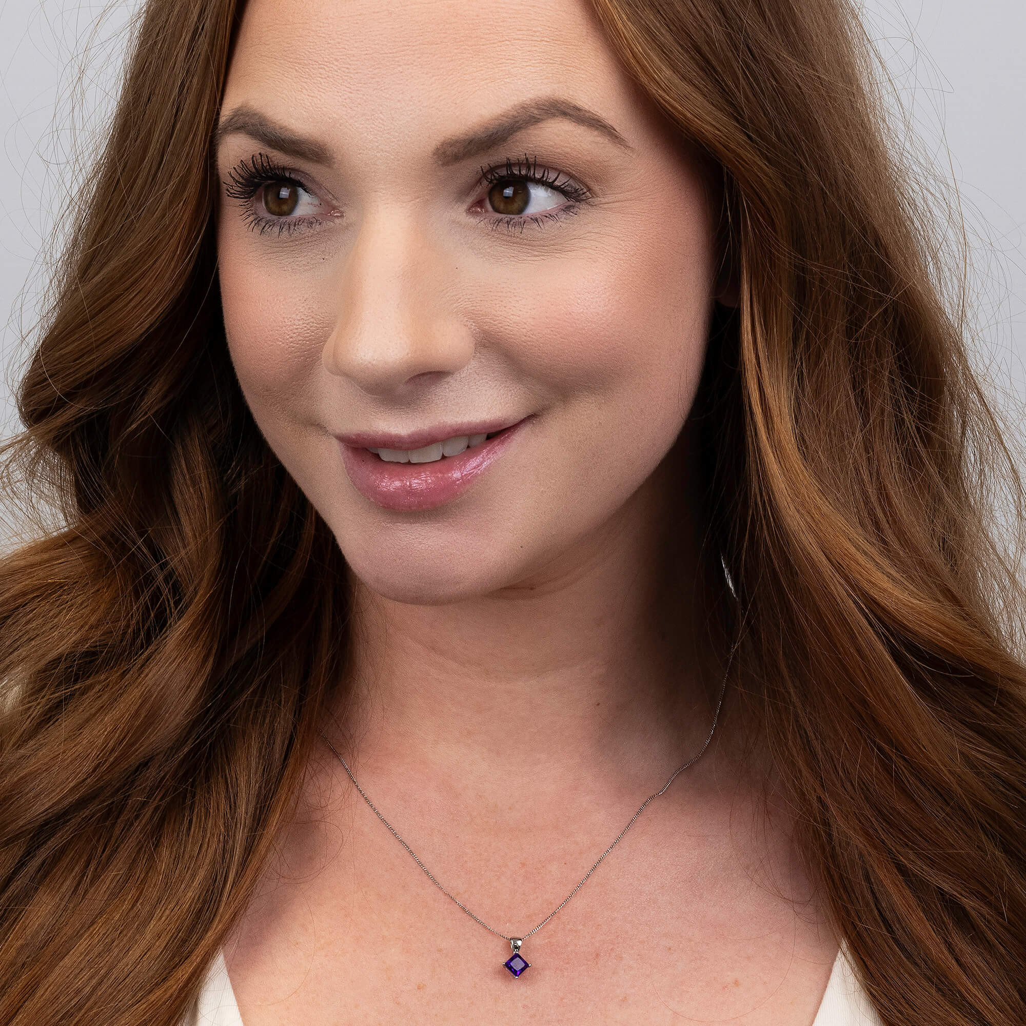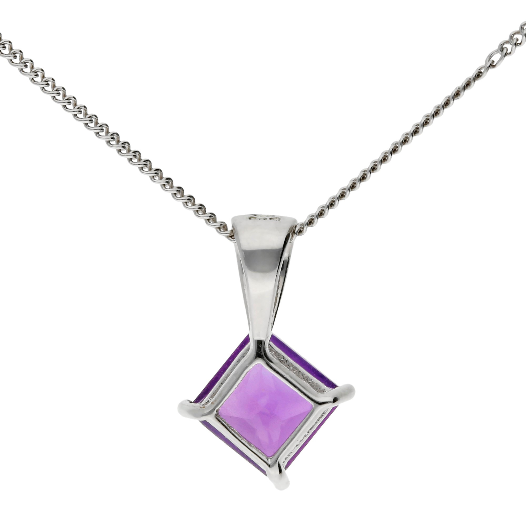 Discover timeless beauty with this exquisite 9ct White Gold 0.60ct Amethyst Pendant. At its centre is a vibrant square faceted amethyst, securely claw set in polished white gold. The gemstone’s deep purple colour and sparkling facets create an eye catching design that adds sophistication to any look.