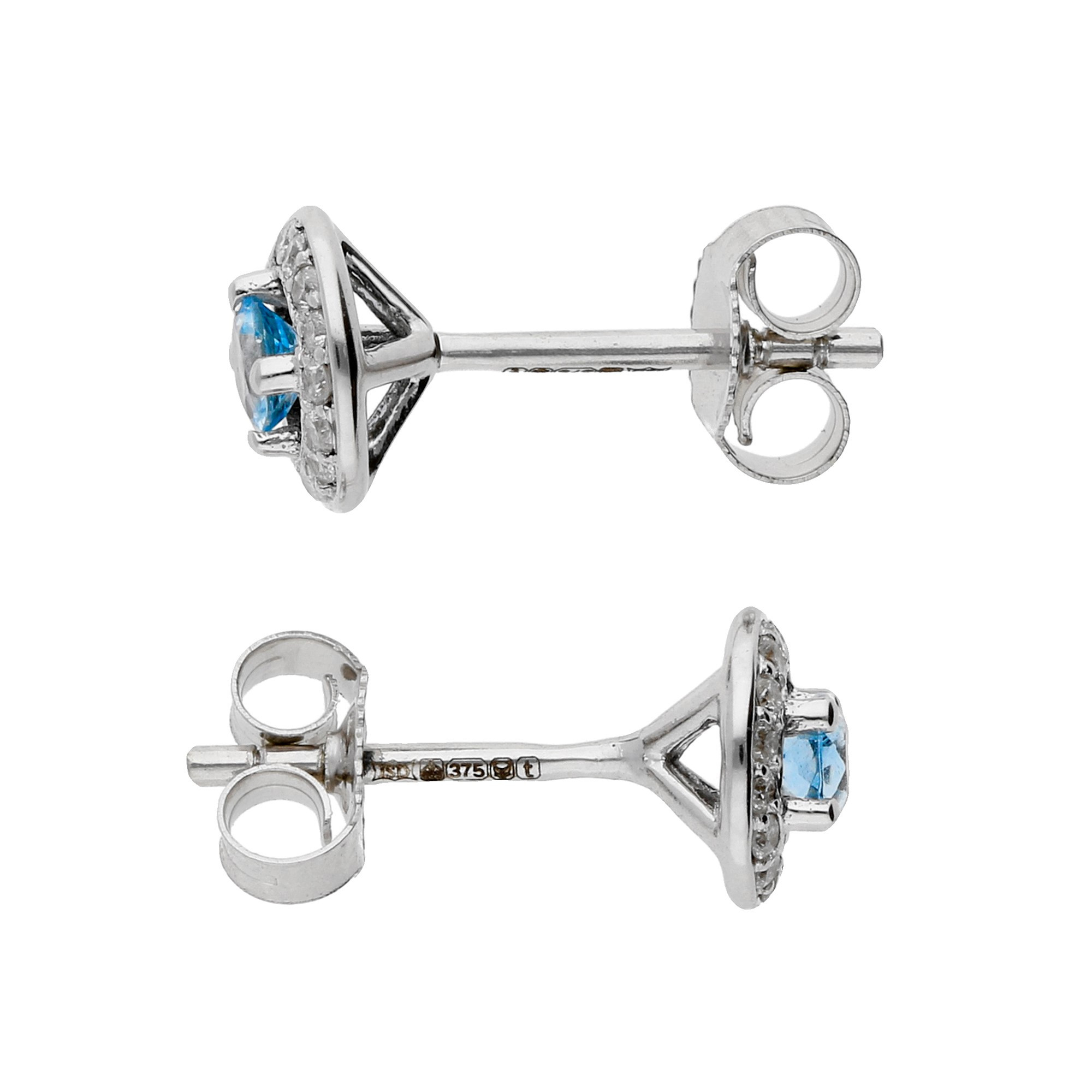 Enhance your jewellery collection with our exquisite 9ct White Gold Diamond & Aquamarine Earrings. Perfect for women, these earrings feature small, round aquamarines framed by tiny, glittering diamonds, creating a delicate and sophisticated look. The serene blue of the aquamarines is beautifully highlighted by the surrounding diamonds, adding a touch of sparkle to any outfit. Made from premium 9ct white gold, these stud earrings are designed for lasting elegance. The posts and scroll backs provide secure and comfortable wear, making them ideal for daily use or special occasions. These aquamarine and diamond earrings are a perfect gift or a luxurious addition to your own collection.