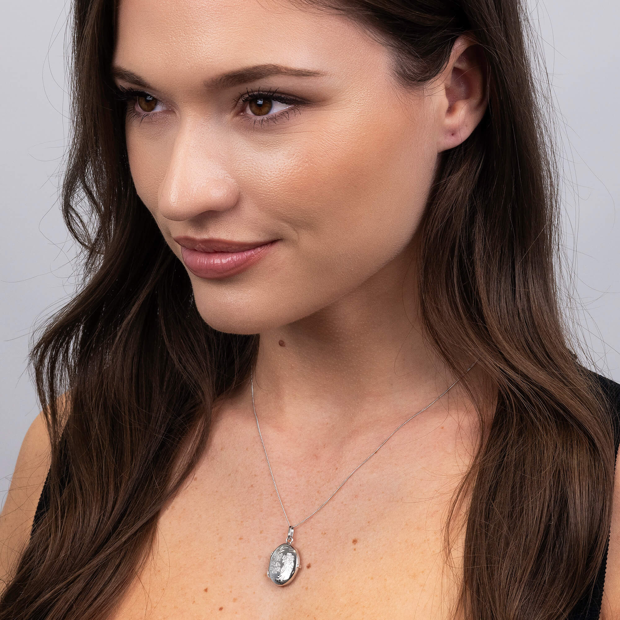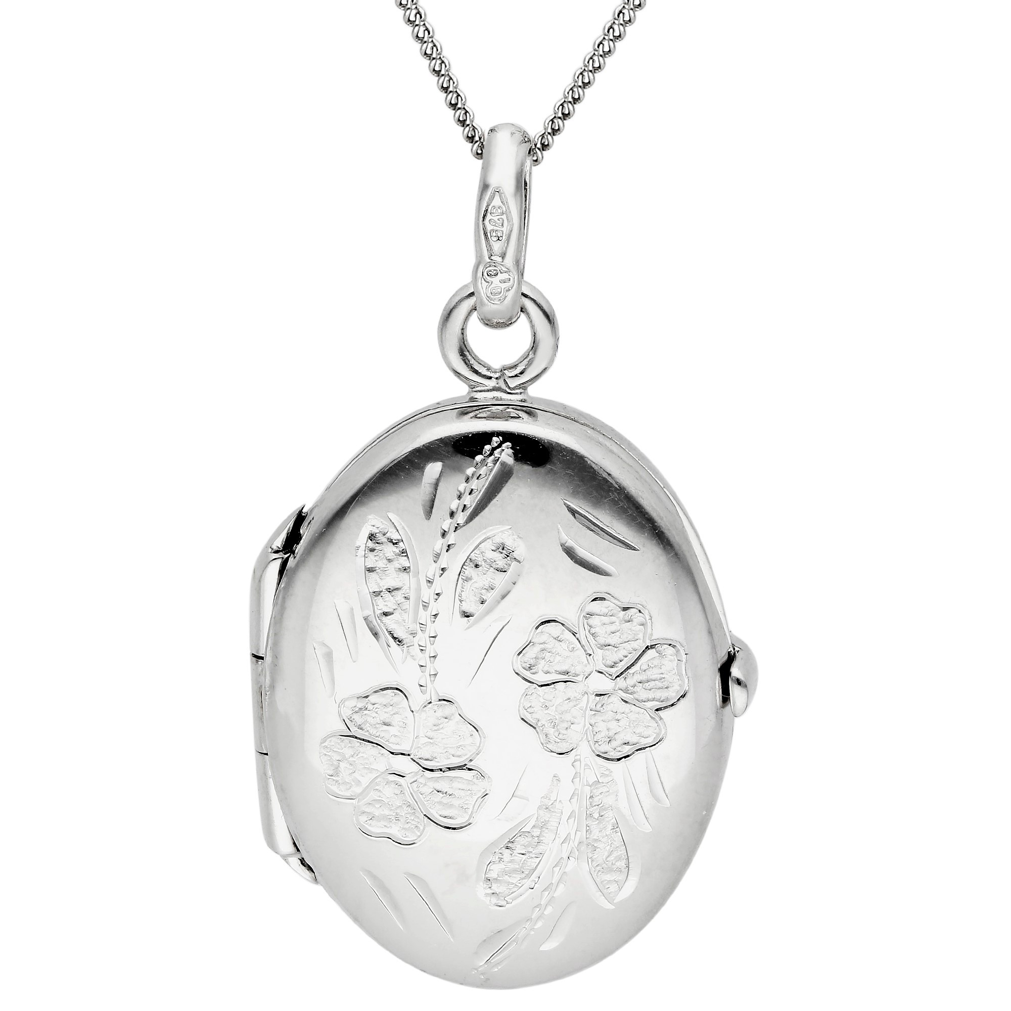 Discover a keepsake of timeless beauty with our 9ct White Gold Oval Floral Locket, a piece that celebrates both elegance and meaning. This stunning locket features a hand engraved floral motif on the front, showcasing delicate details that add a touch of refinement. The oval locket opens to hold cherished photos, making it an ideal way to keep memories close. The reverse side is plain, offering a perfect space for engraving a name, date, or message. Suspended on a white gold chain, with length options to suit your style, this locket is a meaningful addition to any jewellery collection. Whether as a thoughtful gift or a personal memento, this floral locket combines the enduring charm of white gold with a touch of individuality.