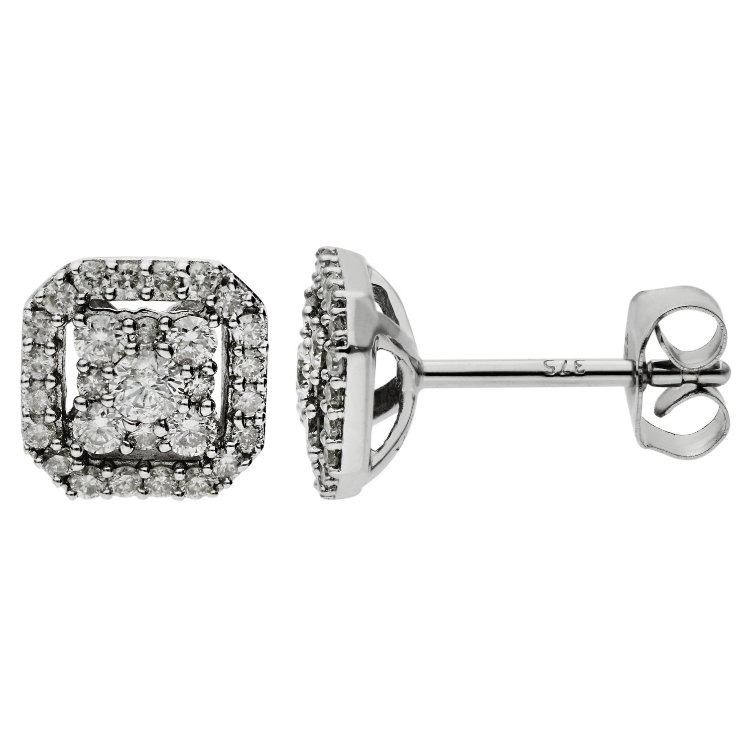 Elevate your elegance with our 9ct White Gold 0.33ct Diamond Earrings. These stunning women's earrings showcase a square cluster of diamonds, framed by an open diamond halo that enhances their brilliance. With a total carat weight of 0.33ct, these diamonds offer a captivating sparkle that adds sophistication to any ensemble. Designed with secure stud posts and butterfly backs, these earrings ensure comfort and stability throughout the day. Perfect for everyday wear or special occasions, these 9ct white gold earrings make an ideal gift or a luxurious addition to your jewellery collection. Shop now to experience the timeless beauty of diamonds and the exceptional craftsmanship of white gold.