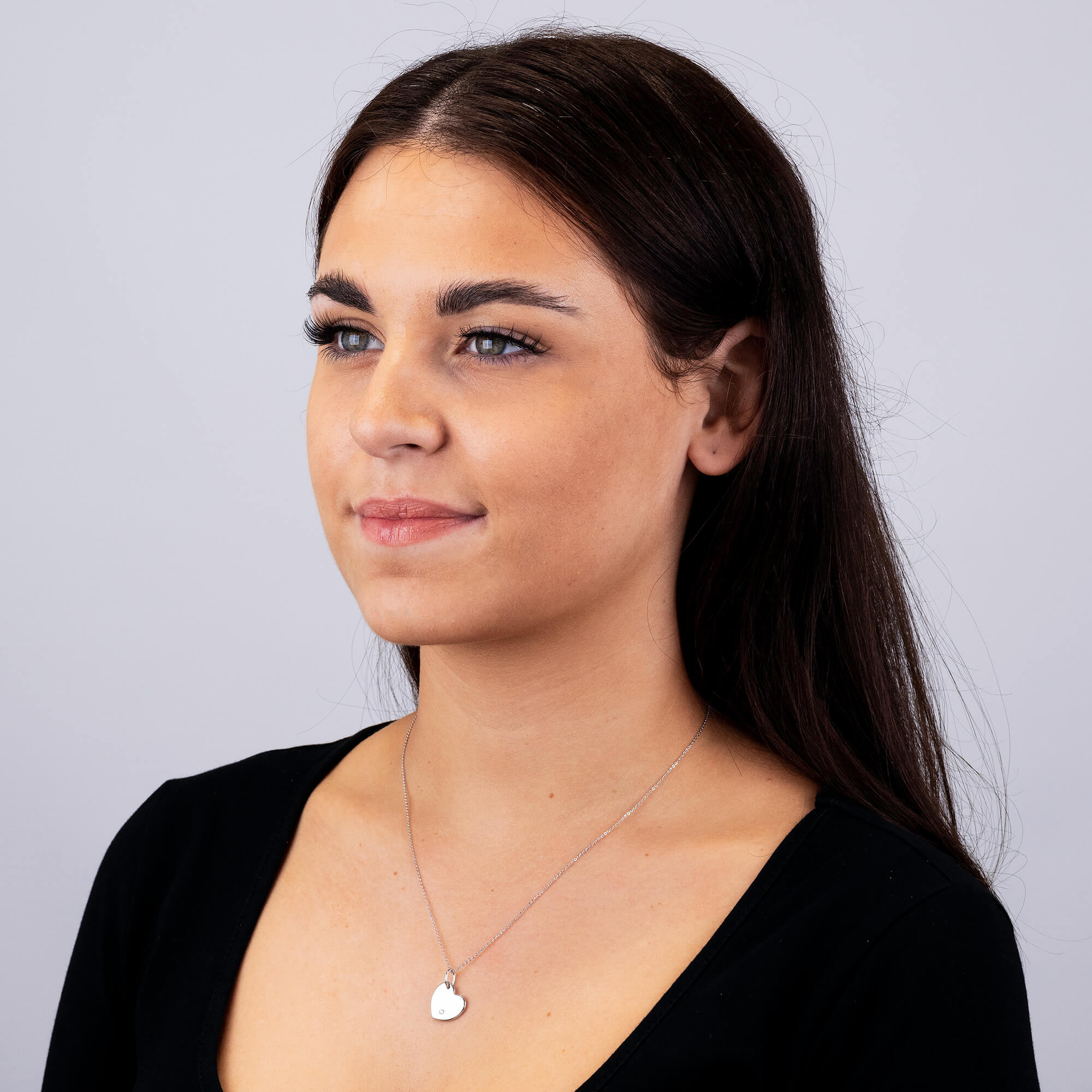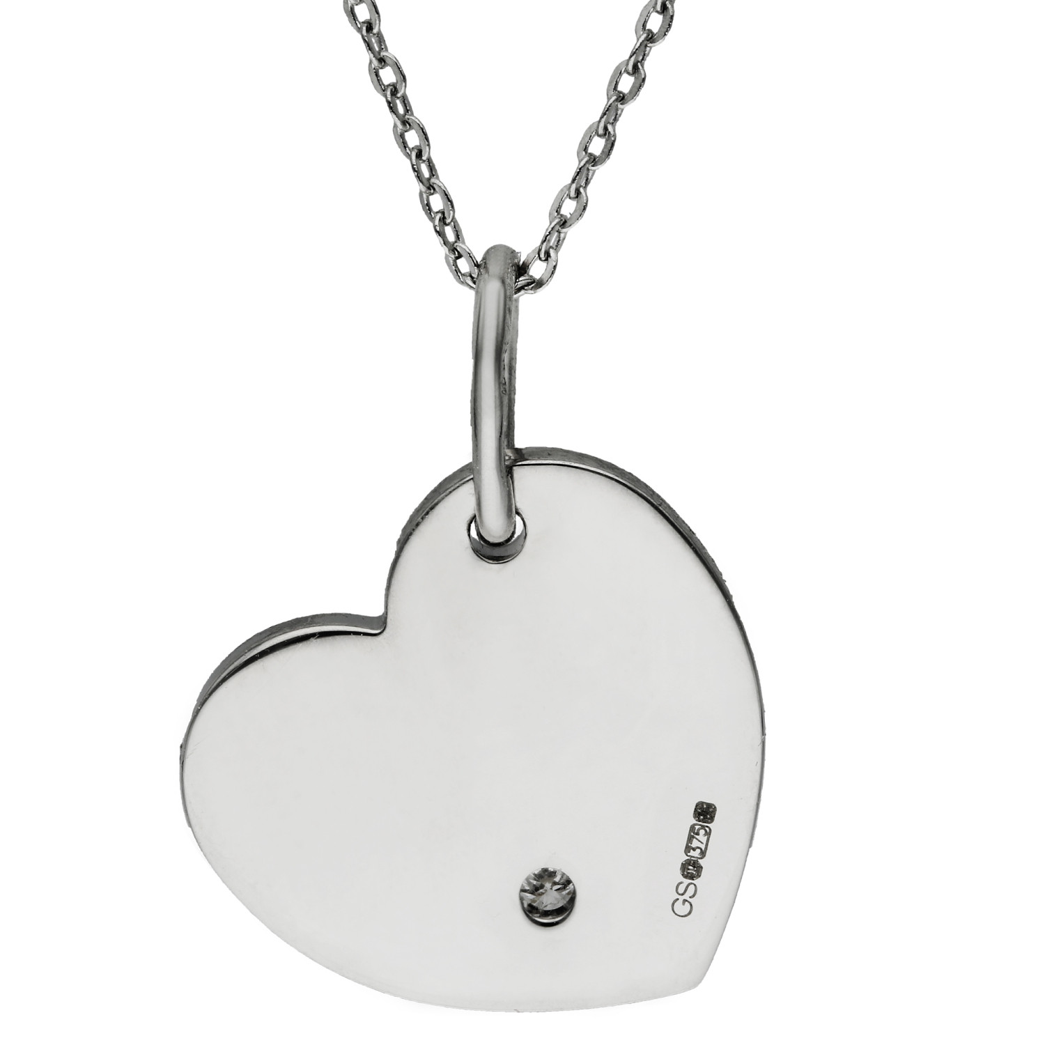 Elevate your jewellery collection with our 9ct White Gold Diamond Heart Pendant, a piece that beautifully combines luxury with personal touch. This exquisite pendant boasts a polished white gold heart tag, elegantly accented with a small, sparkling diamond on the front, adding a touch of sophistication and shine. This heart tag pendant is perfect for custom engraving, whether it's a name, date, or meaningful message, making it an ideal choice for a personalized gift or a special keepsake. Crafted from premium 9ct white gold, this heart necklace is a testament to classic elegance and timeless design, suitable for any occasion. Whether you're looking to treat yourself or searching for the perfect gift, this white gold heart pendant, with free UK delivery, offers a blend of sentimentality and style. Shop now to add a touch of personalized elegance to your ensemble with our Diamond Heart Pendant.
