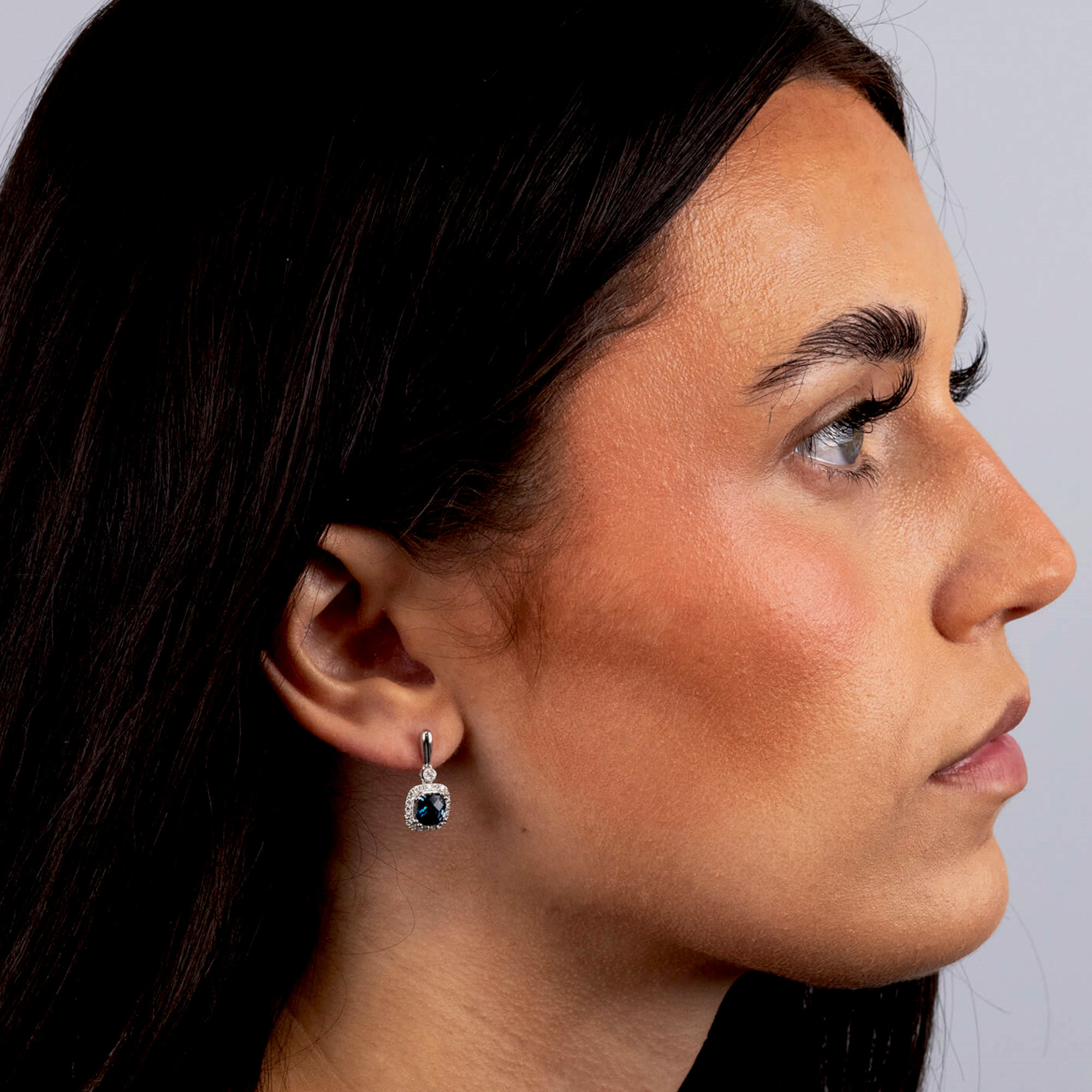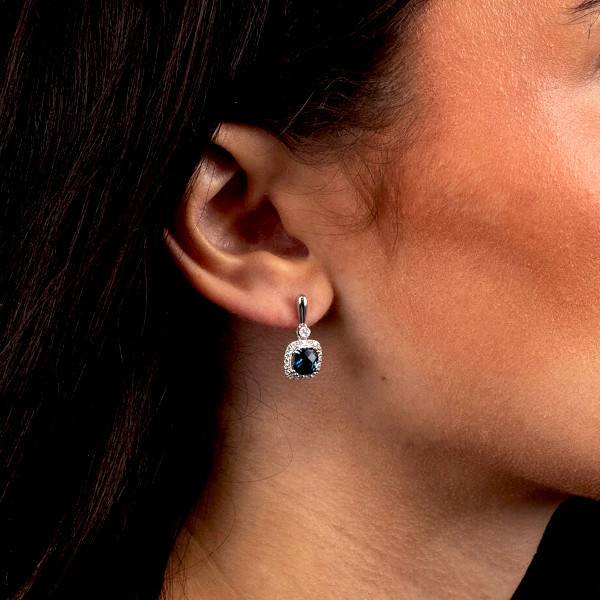 Discover the captivating elegance of our 9ct White Gold Diamond & 2.30ct London Blue Topaz Drop Earrings. Each earring features a stunning rectangular London Blue Topaz, gracefully framed by a halo of glittering diamonds, creating an eye-catching display of colour and sparkle. The lustrous 9-carat white gold surmount is adorned with additional diamonds, enhancing the luxurious appeal. Designed as drop earrings, these exquisite pieces dangle delicately, offering movement and a mesmerising light play. Secure post and scroll backs ensure they remain comfortably in place. Perfect for special occasions or adding a touch of glamour to everyday wear, these earrings are a must-have for any jewellery enthusiast. Add these breath taking London Blue Topaz earrings to your collection and enjoy the blend of classic elegance and contemporary style. Ideal for gift-giving or as a treat to yourself.