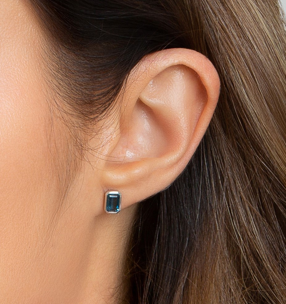 Add a touch of sophistication to your jewellery collection with these exquisite 9ct white gold women's earrings, featuring 1.00ct rectangular shaped London blue topaz. Each topaz is bezel set in white gold, highlighting its deep blue brilliance. These stud earrings come with secure posts and scroll backs, ensuring a comfortable and secure fit. Ideal for both everyday wear and special occasions, these earrings bring a luxurious and elegant charm to any ensemble. Experience the perfect blend of classic and contemporary design with these stunning 9ct white gold topaz earrings.