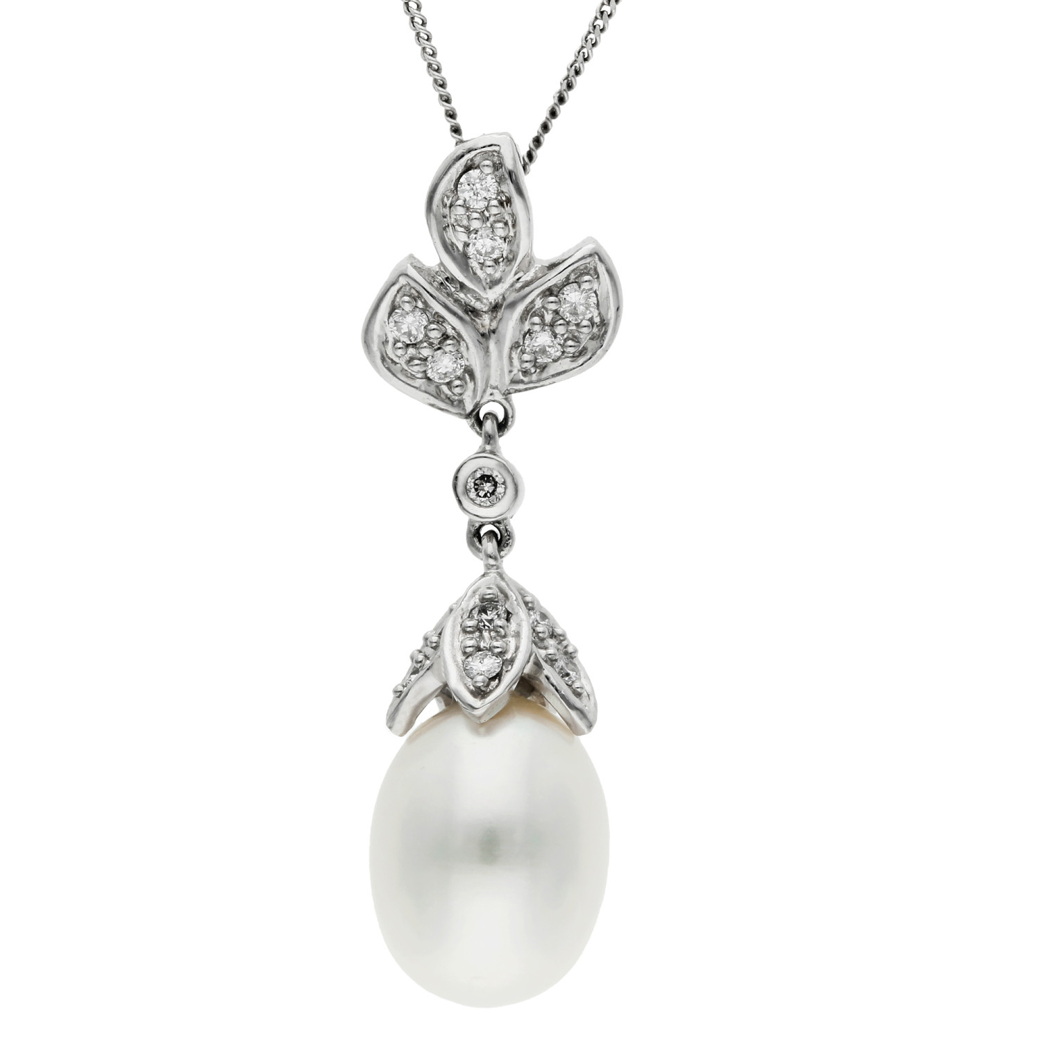 Discover understated luxury with our 9ct White Gold Diamond & Pearl Pendant, a piece that combines elegance with modern flair. A beautifully plump cultured pearl is the centrepiece, exuding a warm lustre that complements any look. Suspended from a diamond set floral surmount crafted in fine white gold, the pendant offers a delicate sparkle and a charming floral touch. The graceful bail enhances the pendant’s refined design, holding it securely on a matching white gold chain, with length options to suit your style. This pearl and diamond pendant is an ideal accessory for both everyday sophistication and special occasions, adding a touch of timeless beauty to any outfit. Perfect as a thoughtful gift or a luxurious addition to your jewellery box, this pendant captures elegance in its purest form.