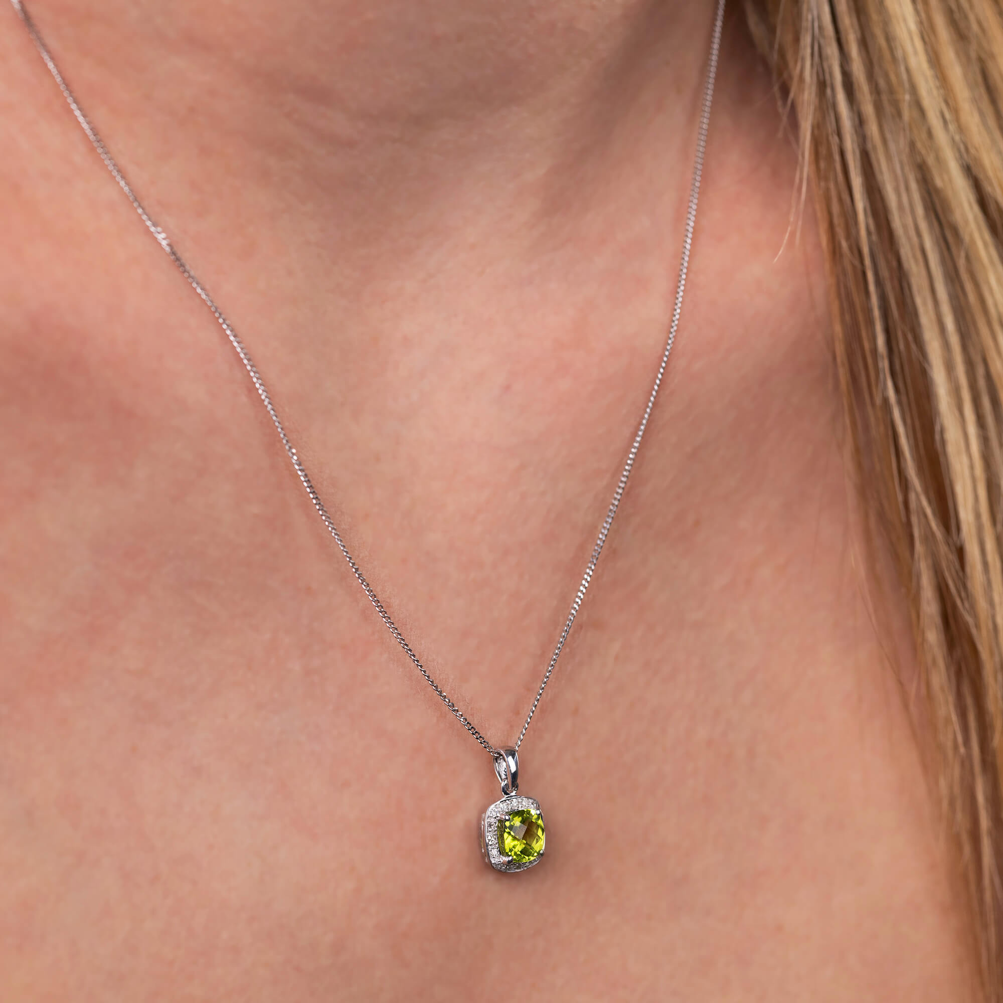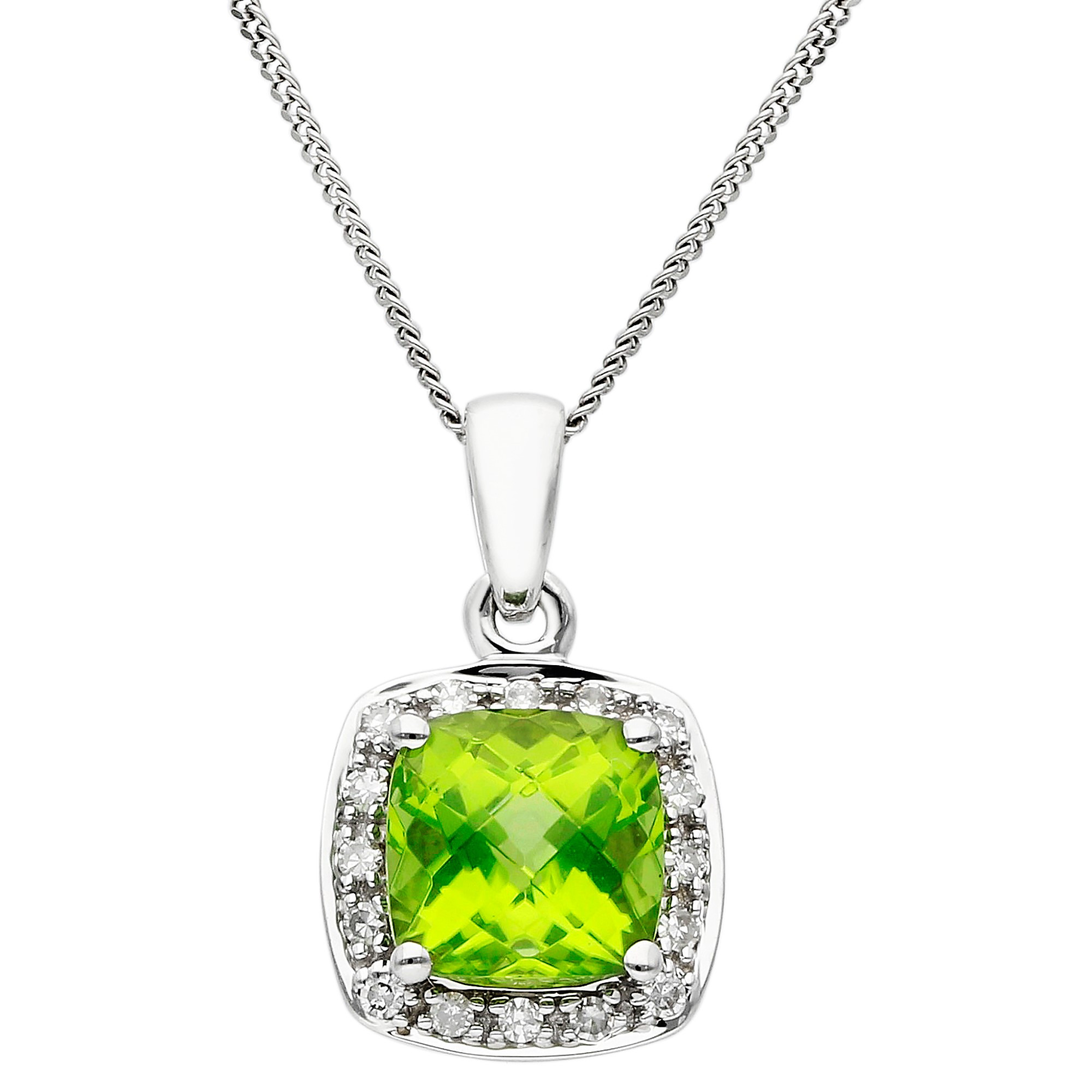 9ct White Gold Diamond & 0.40ct Peridot Pendant