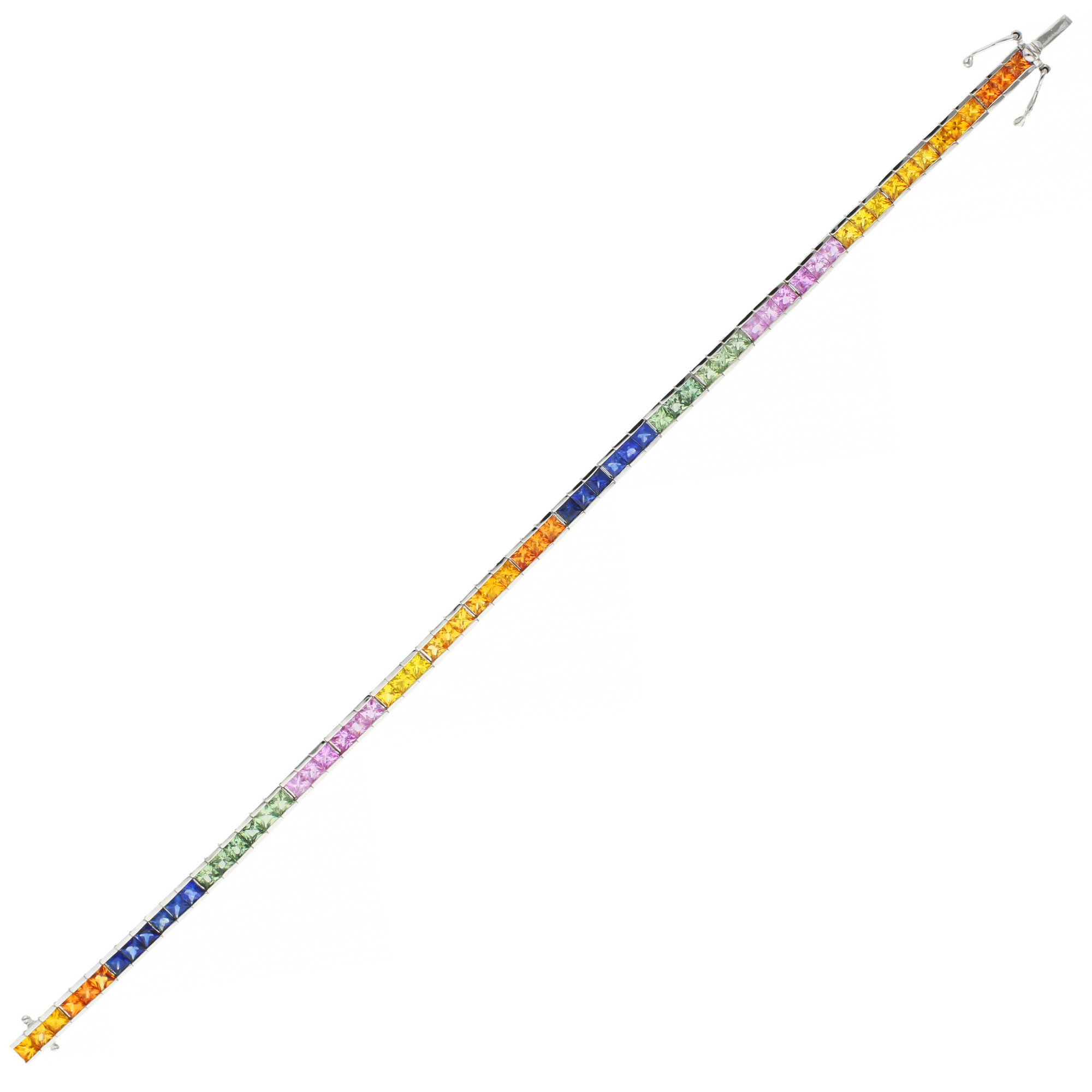 9ct White Gold Rainbow Sapphire Tennis Bracelet
