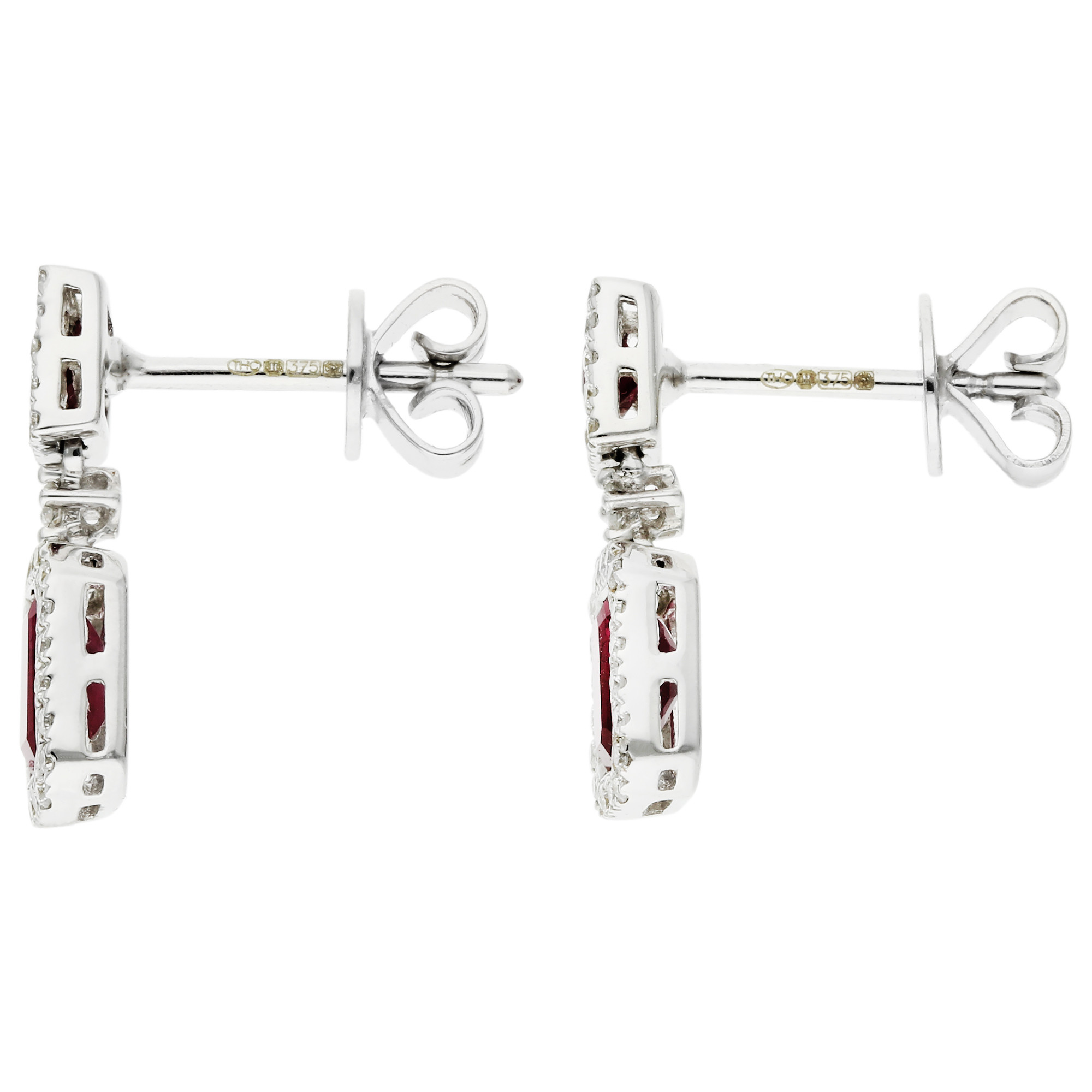 These earrings are expertly crafted from premium 9ct white gold, providing a perfect backdrop for the 0.92carats of richly coloured rubies and the brilliant sparkle of the surrounding diamonds. Designed for versatility and comfort, they feature secure posts and butterfly backs, ensuring they remain in place for any event from daytime engagements to evening celebrations.