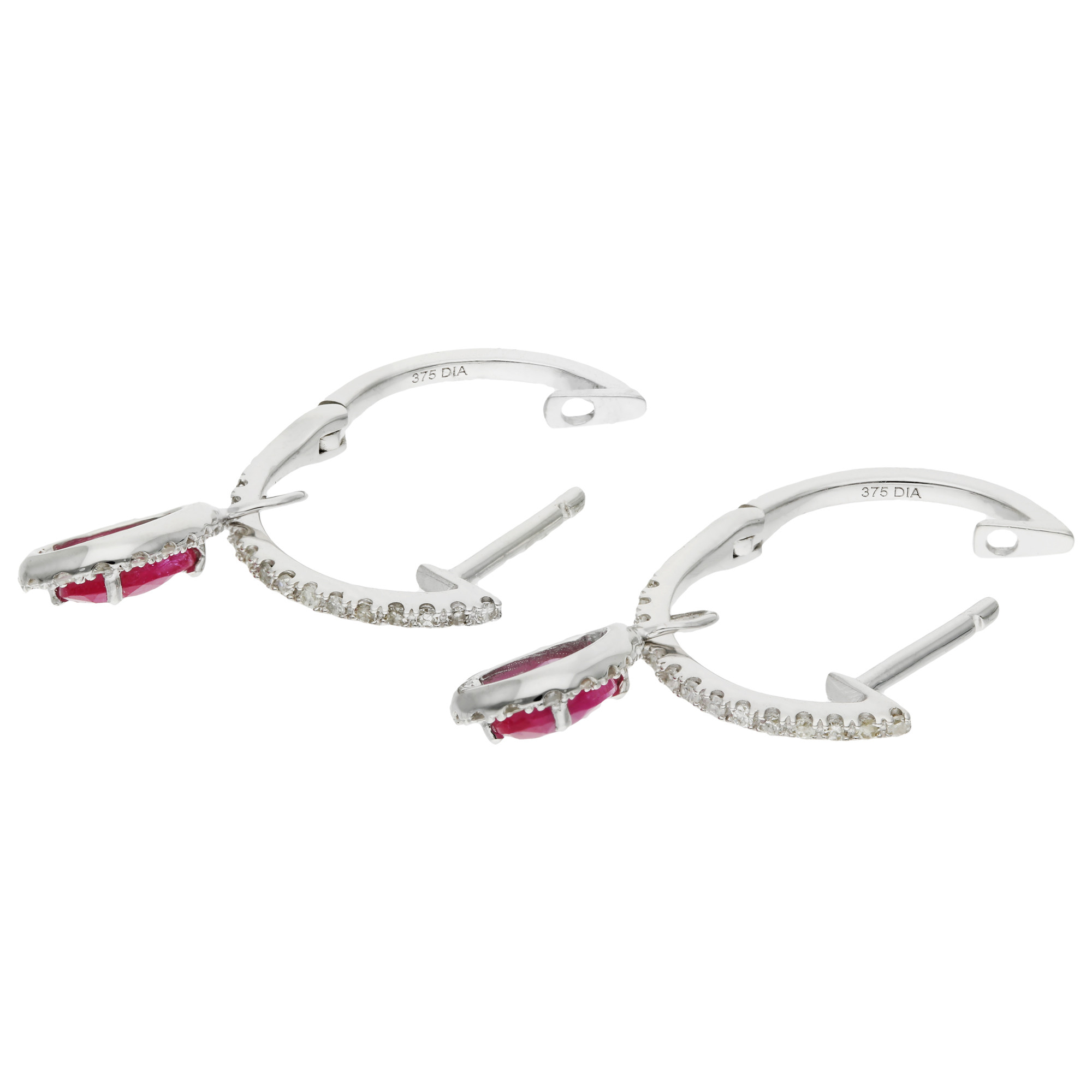 Designed for those special occasions that call for a touch of luxury, these earrings secure comfortably with a hinged hoop, offering both style and peace of mind. Ideal for gifting or as a cherished addition to your own jewellery collection, these ruby and diamond drop earrings promise to enchant and impress, adding a spectacular finish to any ensemble.