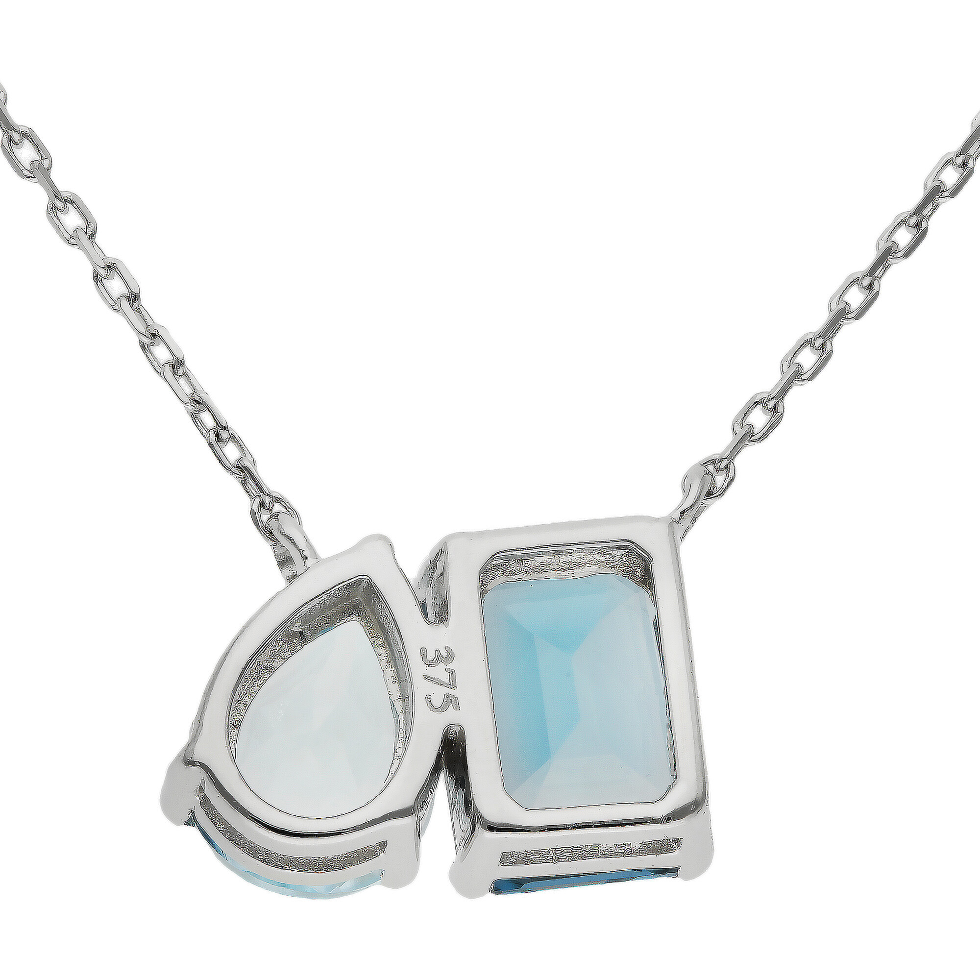Embrace the contemporary charm of this 9ct White Gold Topaz Necklace, crafted with the unique 'toi et moi' design that beautifully pairs two contrasting topazes. The necklace features a bold rectangular London blue topaz and a soft pear shaped sky blue topaz, elegantly held together on an adjustable white gold chain. This versatile piece allows for length adjustment from 16 to 18 inches, providing perfect fit and comfort. Ideal for adding a touch of sophistication to your wardrobe, this necklace is a testament to modern design infused with classic elegance, making it an ideal gift or a personal treat.
