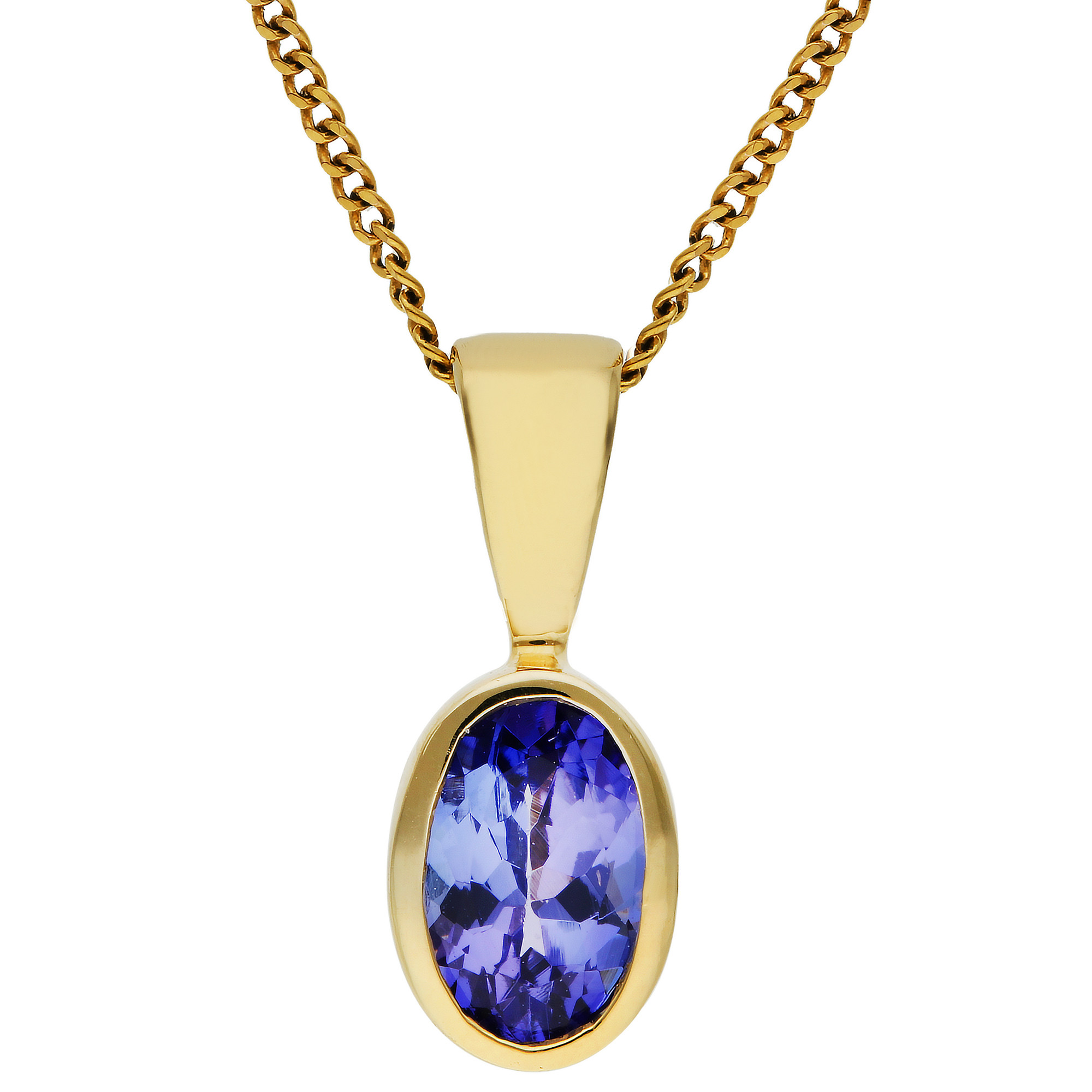 Discover the captivating charm of our 9ct Yellow Gold Tanzanite Pendant, featuring a 0.50ct oval faceted tanzanite beautifully bezel set in lustrous yellow gold. The pendant dangles from a robust fixed bail, offering a modern twist to a classic design. Accompanied by a chain, you can customise the length to your preference directly from the dropdown menu. Ideal for adding a subtle statement to your attire, this tanzanite pendant is perfect for those seeking a piece that combines timeless elegance with contemporary flair.