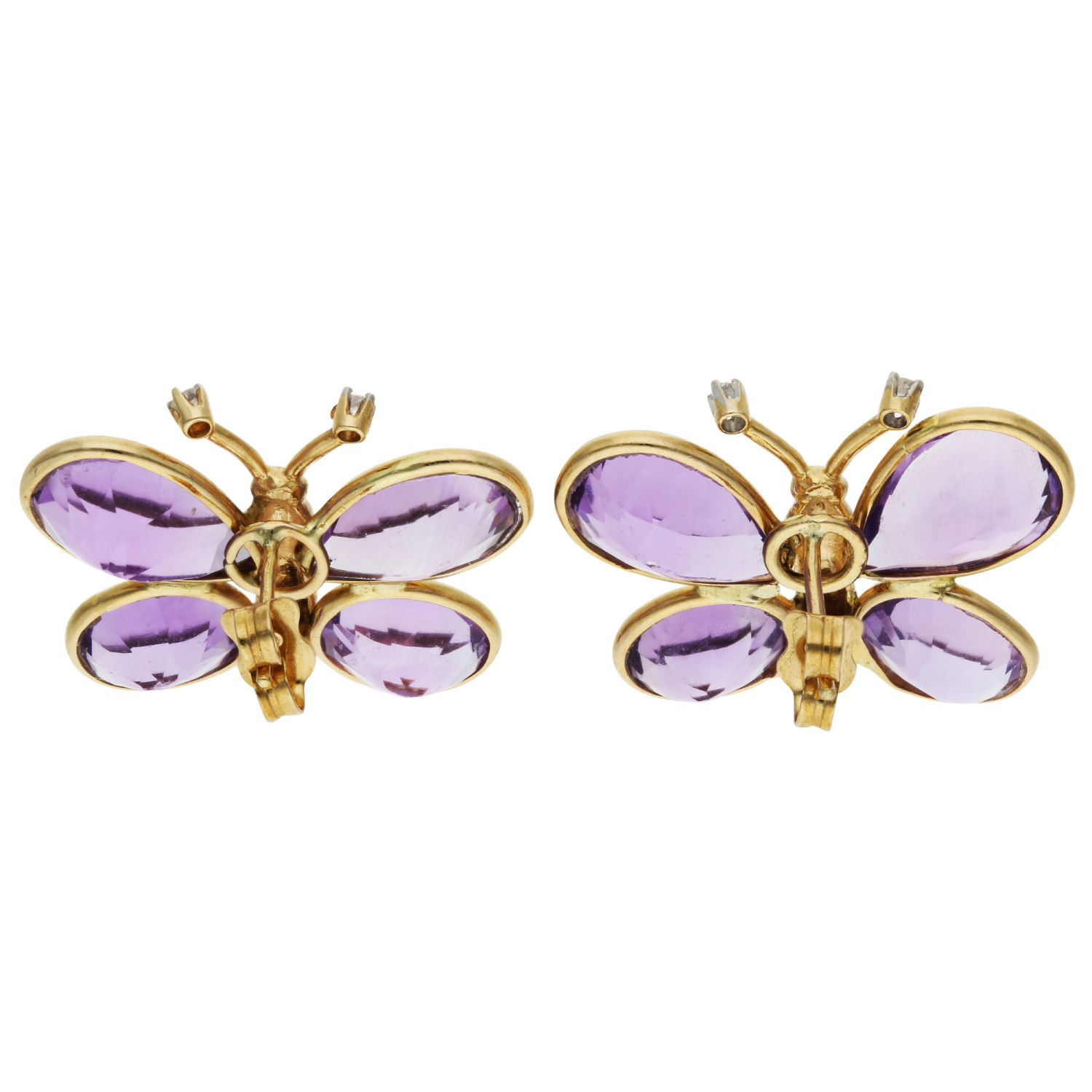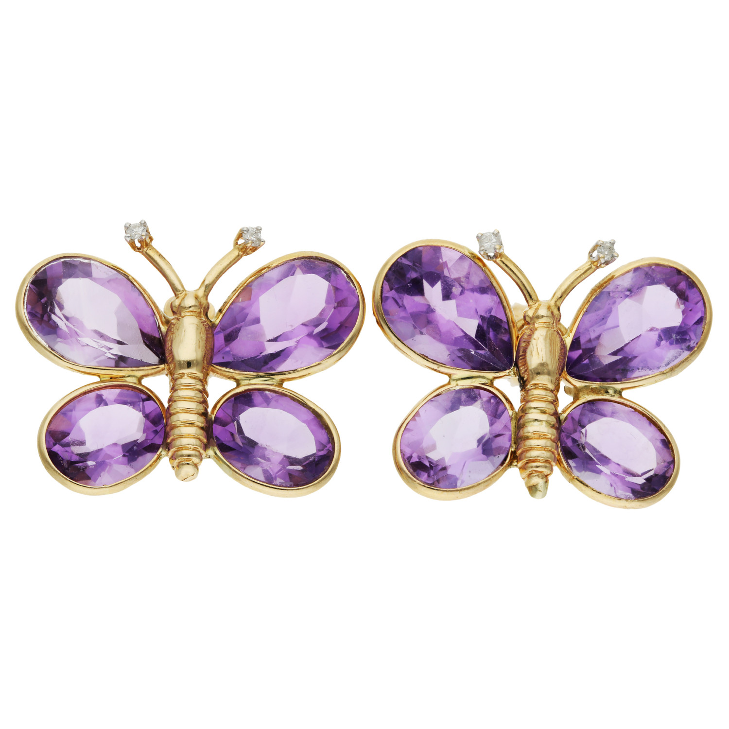 Introducing our stunning Pre-Owned Amethyst, Diamond & 9ct Yellow Gold Earrings, a must-have for any jewellery aficionado. These earrings boast an elegant design featuring bezel-set, pear and oval-shaped faceted amethysts, which catch the light beautifully, showcasing their deep, vibrant purple hues. The luxurious 9ct yellow gold body complements the amethysts, with diamond-set antennae adding a hint of sparkle and sophistication to the overall design. Perfect for adding a touch of glamour to any outfit, these earrings are versatile enough for both day and evening wear. Crafted with precision and care, they are a testament to timeless beauty and elegance. Make a statement with these exquisite earrings, a splendid addition to any jewellery collection. Ideal for those who appreciate the fine craftsmanship of pre-owned pieces, they offer both quality and style. Elevate your jewellery game with these breath taking amethyst and diamond earrings.