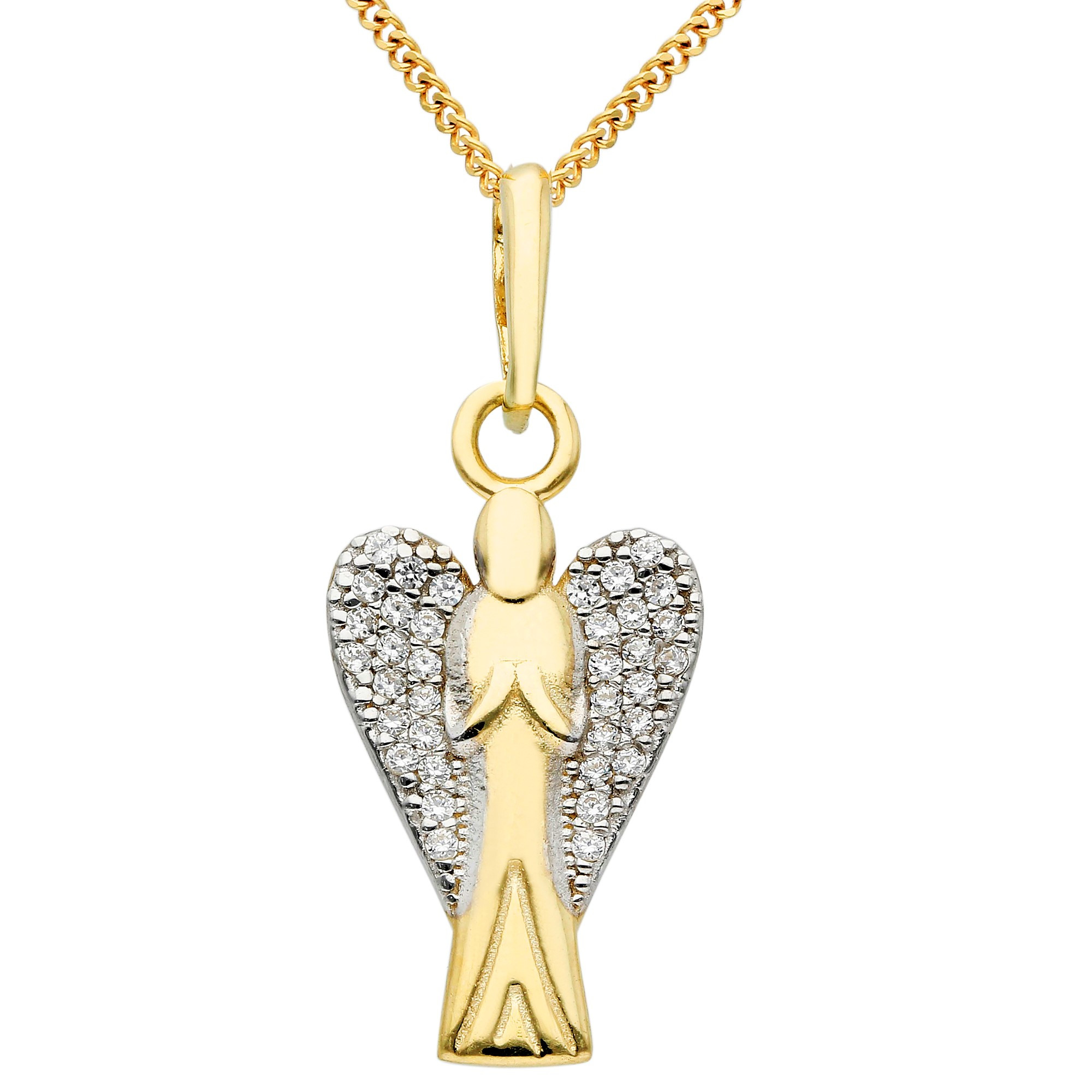 Elevate your style to the divine with this exquisite 9ct Yellow and White Gold Angel Pendant, featuring wings encrusted with cubic zirconia that capture the light with every movement. Crafted from the finest gold, this pendant showcases a detailed angelic figure, complete with a halo that seamlessly transitions into a polished bail. Accompanied by a versatile chain, available for you to customize in length via the dropdown menu, this pendant is perfect for those who cherish spiritual symbols or seek a meaningful gift. Whether worn daily or on special occasions, this angel pendant is sure to bring a sense of peace and a subtle sparkle to your ensemble.