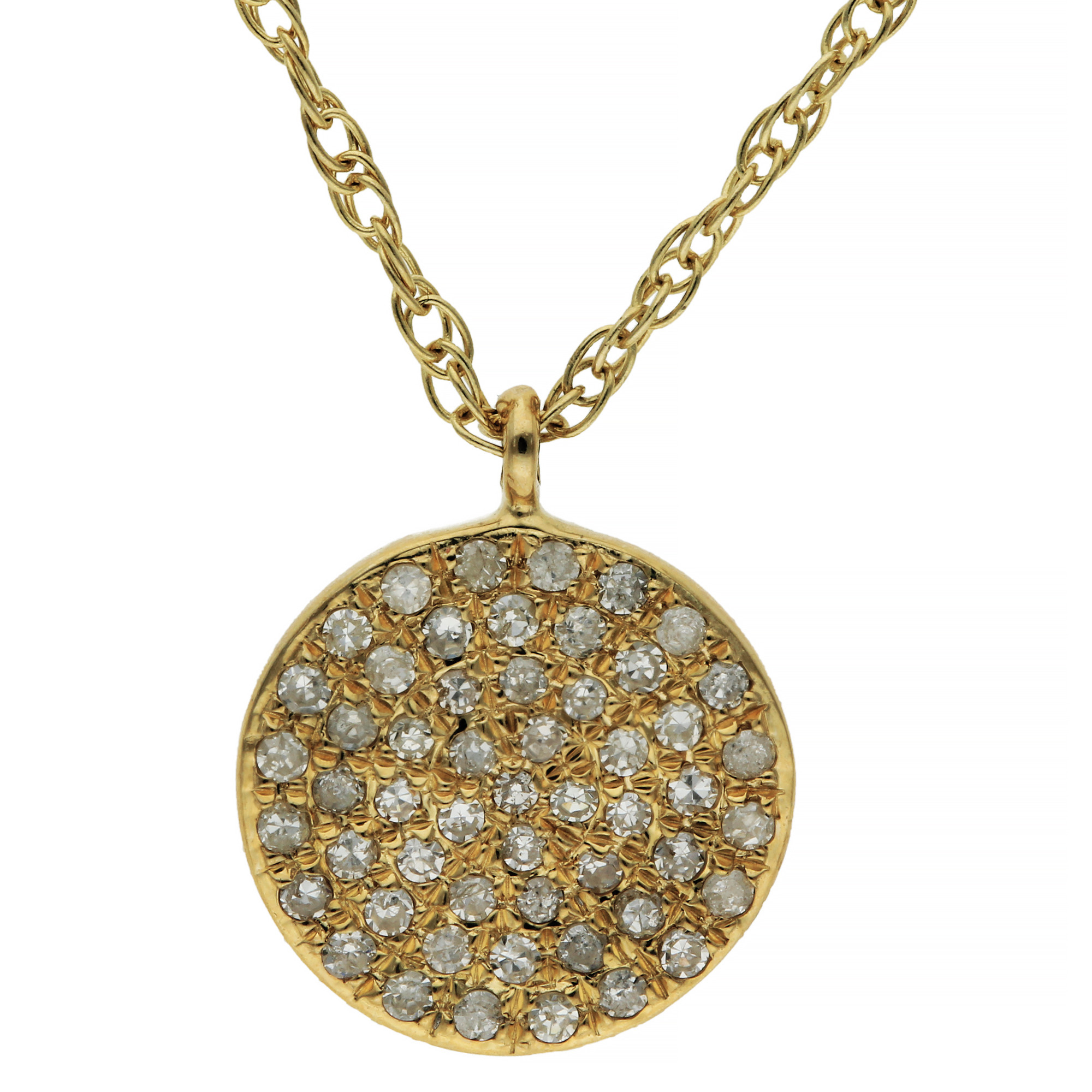 Add a touch of classic sophistication to your look with this 9ct Yellow Gold Diamond Pendant, designed to catch the eye with its understated charm. The pendant showcases a round yellow gold disc, expertly pavé set with a collection of tiny diamonds that offer a delightful sparkle against the rich gold backdrop. This design is refined and versatile, making it a lovely choice for both everyday wear and special occasions. Complete with a yellow gold chain, this pendant has a timeless appeal, offering a graceful shine that complements any style. Perfect as a gift or a treat for yourself, this diamond pavé pendant will bring effortless elegance to your jewellery collection.