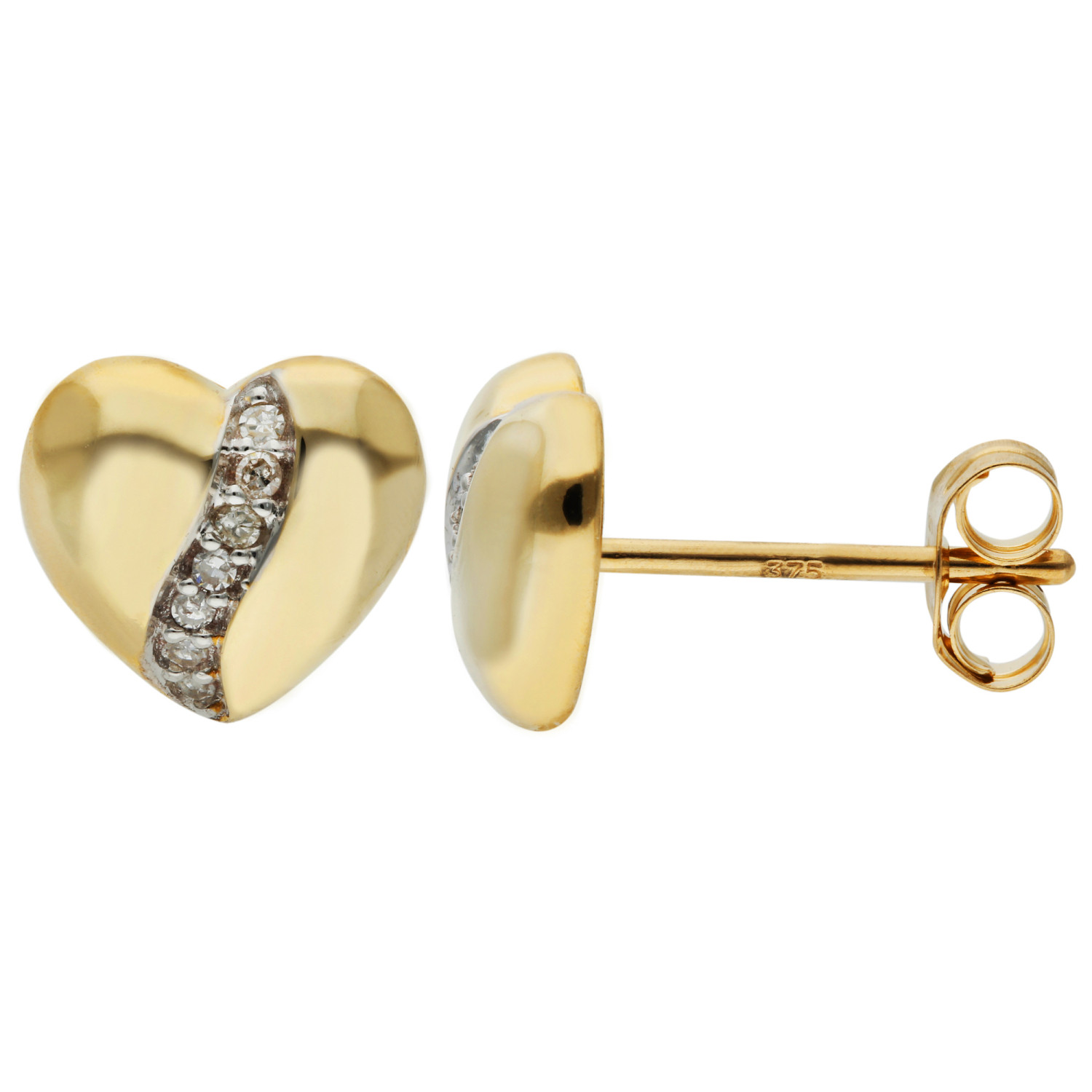 Embrace elegance with our 9ct Yellow Gold Heart Earrings, featuring a striking diamond accent across the middle. These exquisite heart-shaped stud earrings are the epitome of sophistication, designed to add a touch of sparkle and timeless beauty to any ensemble. Crafted from premium 9ct yellow gold, they offer a warm, luxurious glow that complements all skin tones, making them a versatile addition to any woman's jewellery collection.