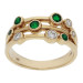 Celebrate vibrant elegance with this stunning 9ct Yellow Gold Emerald and Diamond Ring. Crafted with meticulous attention to detail, the design features three sleek strands of yellow gold. Each strand is adorned with a delightful combination of bezel set, round faceted emeralds and sparkling diamonds. The bubble design adds a modern and playful touch, making this piece a standout addition to any jewellery collection.
