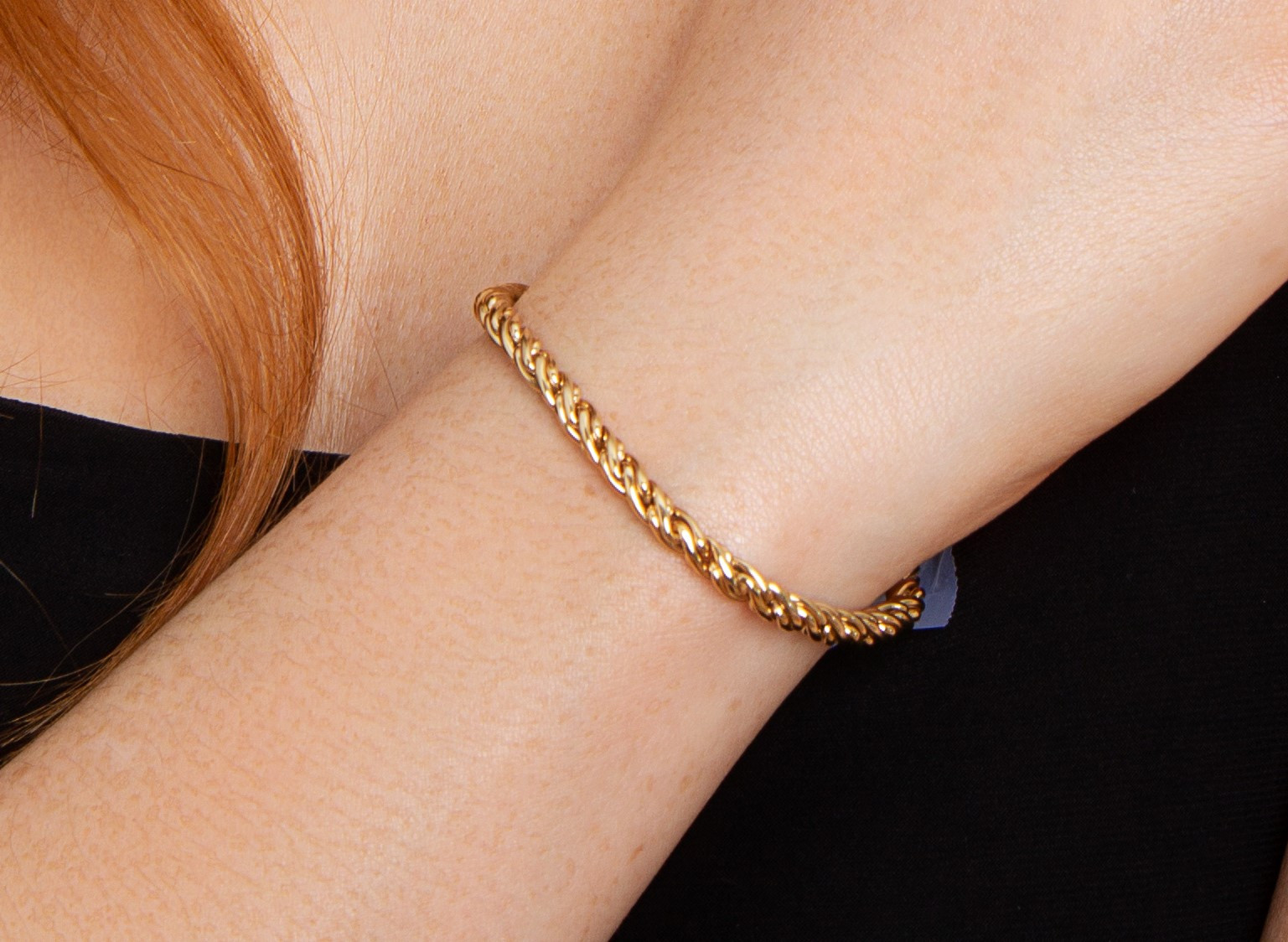 Meticulously crafted by experienced artisans, this bracelet is designed for both durability and comfort. It features a secure clasp that ensures it remains comfortably in place throughout your day, while the polished gold provides a subtle lustre that adds a luxurious touch to your style.