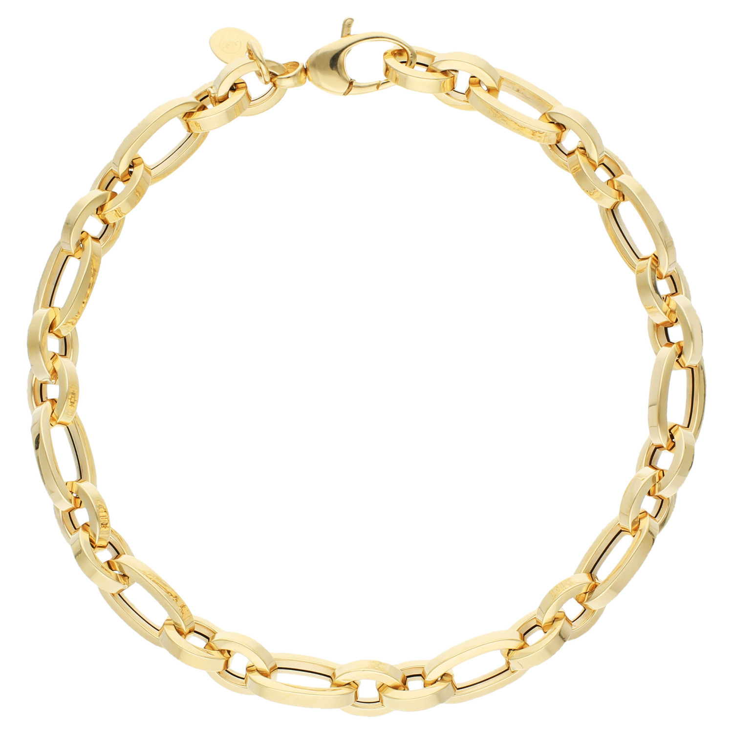 Enhance your accessory game with our fabulous 9ct Yellow Gold Bracelet, a versatile piece that exudes elegance. This bracelet is designed with variously shaped hollow oval links, each meticulously crafted in 9ct yellow gold for a luxurious finish. The unique link arrangement offers a modern twist on a classic design, making it an outstanding choice for everyday elegance or special event glamour. Its robust yet refined construction ensures it can be enjoyed for years, becoming a staple in your jewellery repertoire. Whether you're looking for the perfect gift for a memorable occasion or simply want to elevate your personal style, this yellow gold bracelet is an impeccable choice.