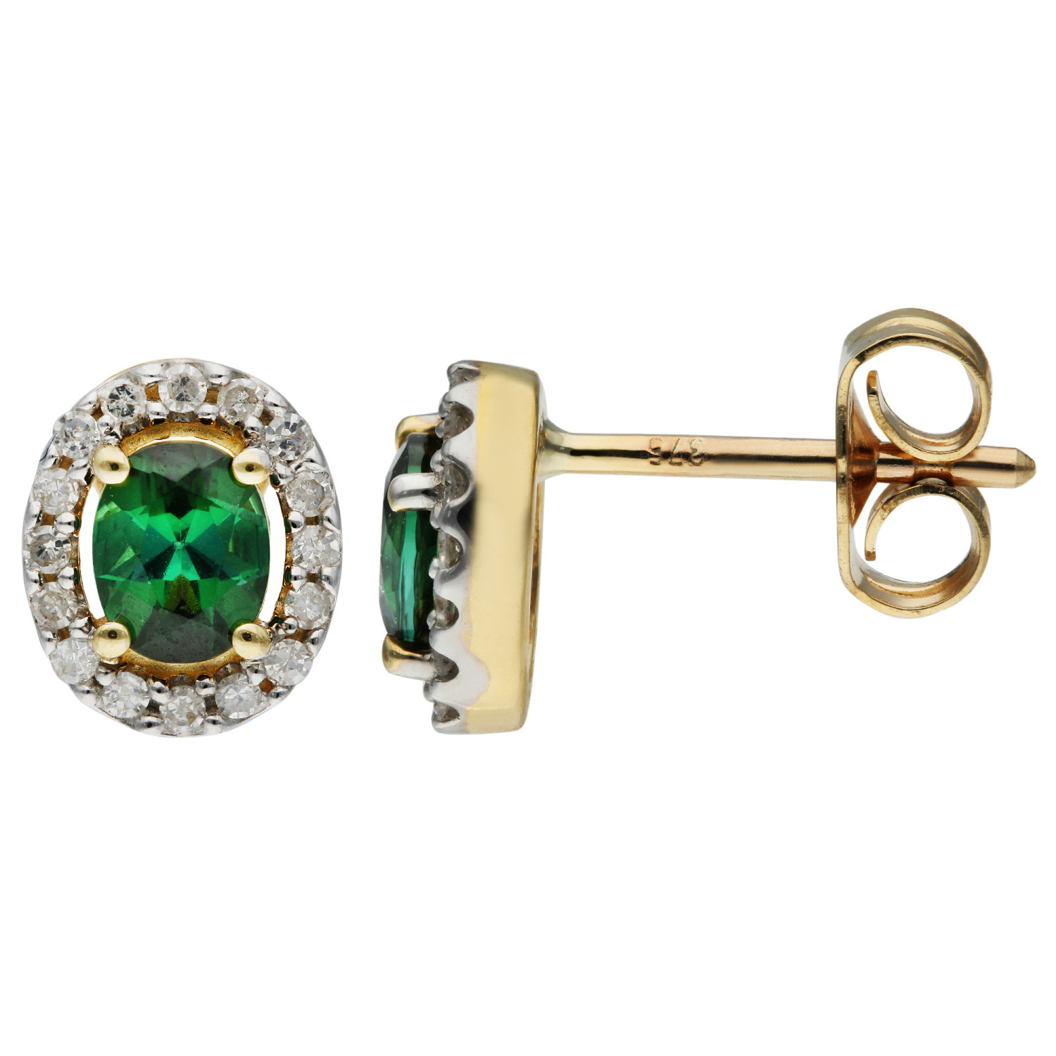 9ct Yellow Gold Diamond & 0.45ct Green Tourmaline Earrings