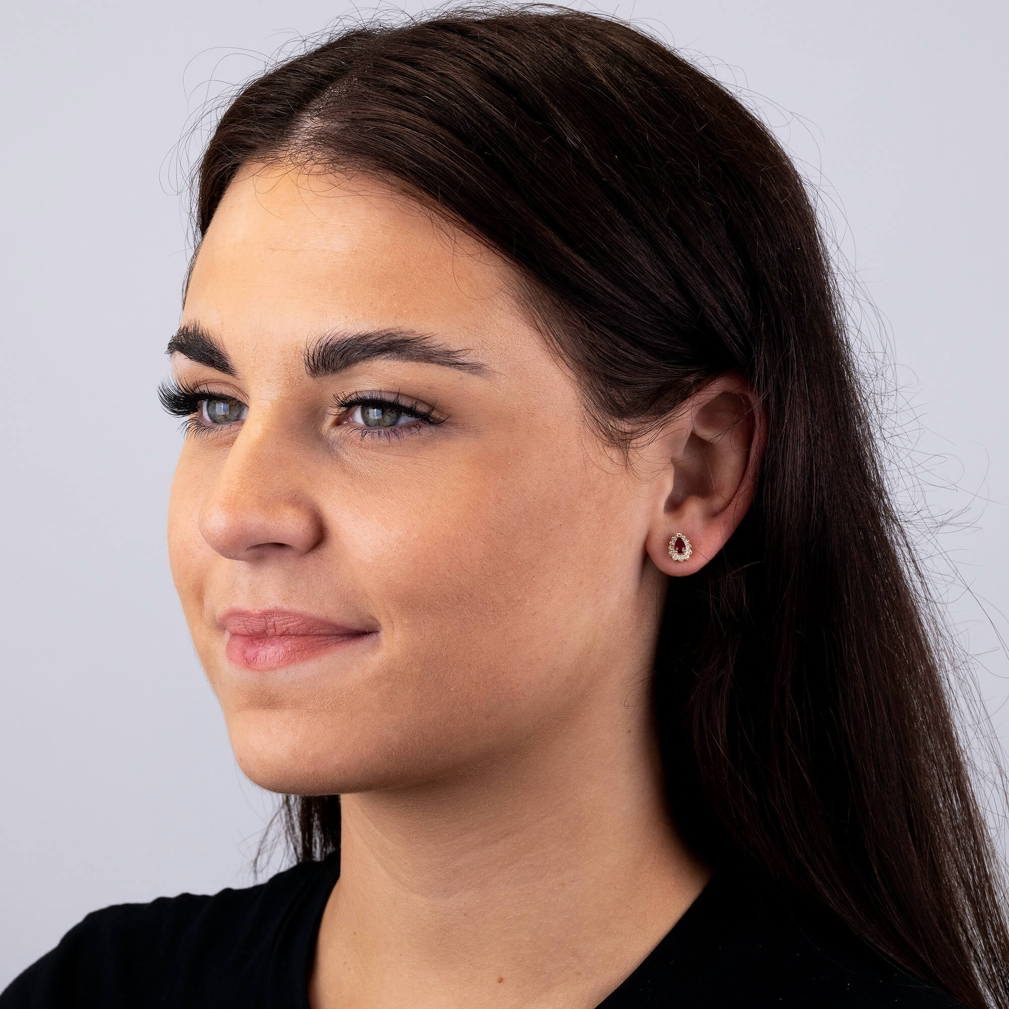 Add a touch of sophistication to your jewellery collection with these stunning 9ct Yellow Gold Earrings, adorned with 0.46ct teardrop shaped rubies and encircled by brilliant diamonds. The vibrant rubies catch the light with every movement, while the surrounding diamonds add a dazzling finish.