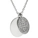 Celebrate refined style with this elegant Cubic Zirconia and Sterling Silver Pendant. The design features two oval silver discs—a large plain disc ready for custom engraving on either side, and a smaller disc pavé set with tiny Diamonfire cubic zirconias that catch the light beautifully. This combination of sleek silver and sparkling stones creates a timeless and sophisticated look.
