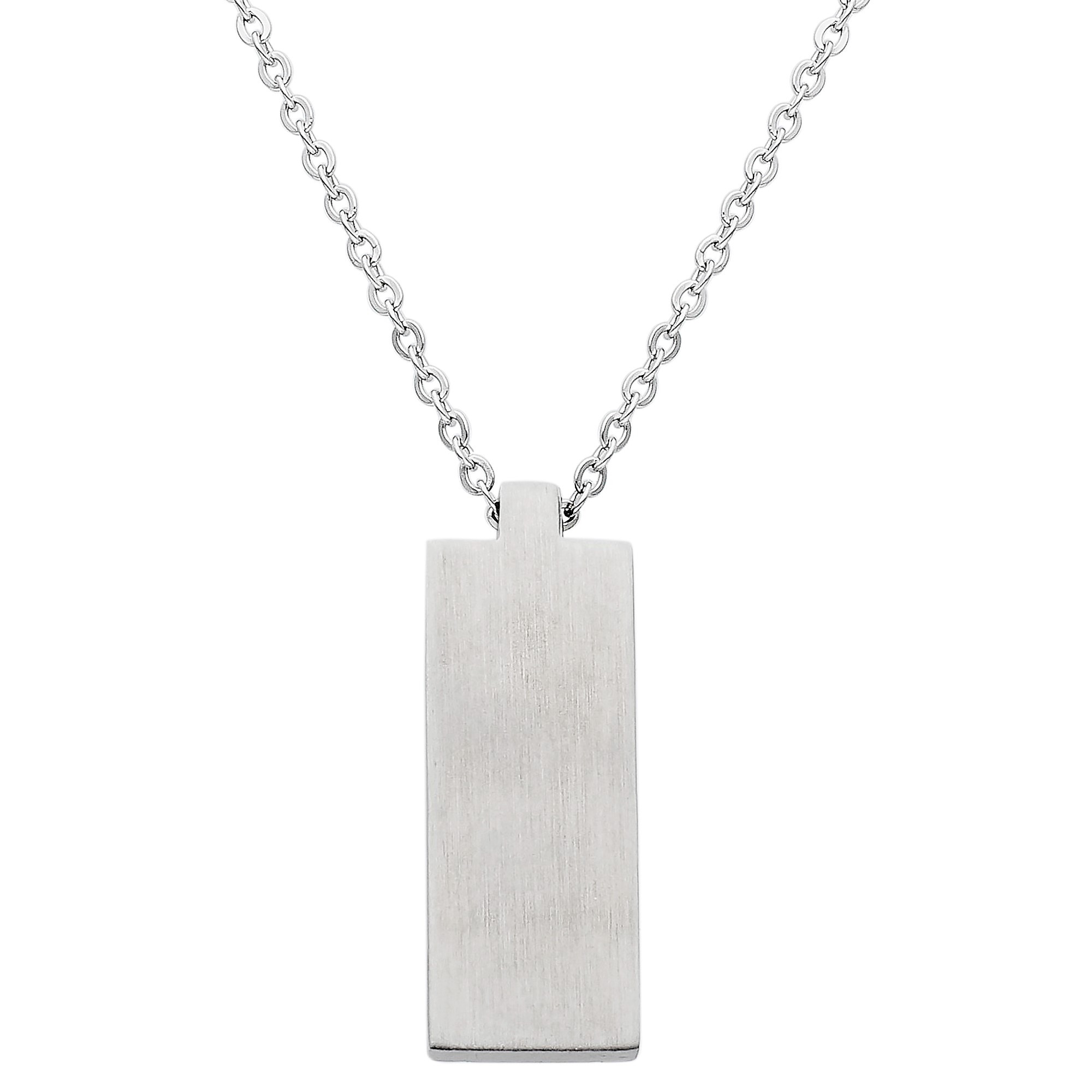 Make a statement with this Men's Stainless Steel Tag Pendant, a blend of rugged durability and refined design. The adjustable 20 to 21-inch trace chain provides comfort and versatility, while the ID tag pendant showcases brushed and high-polish steel finishes for a contemporary look.