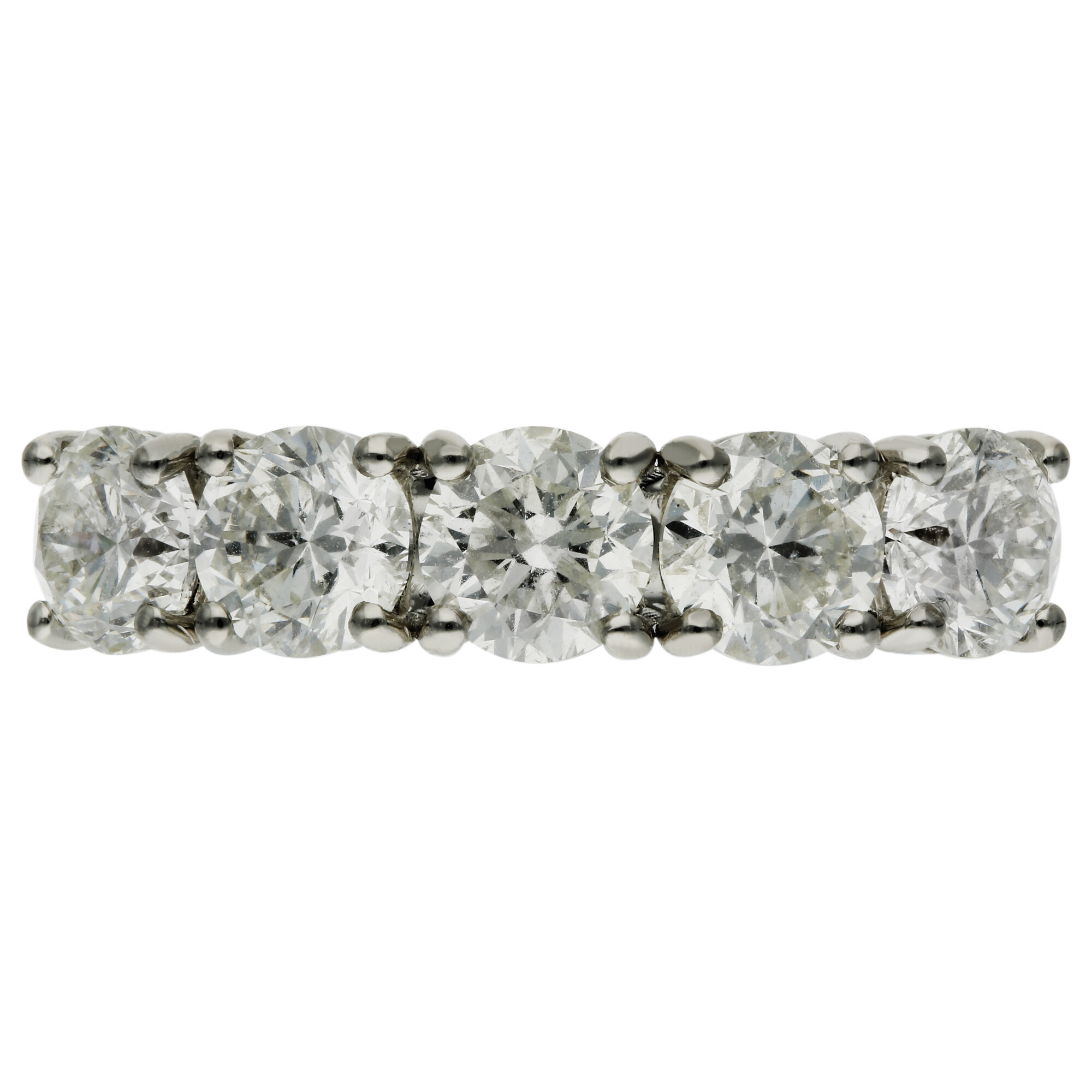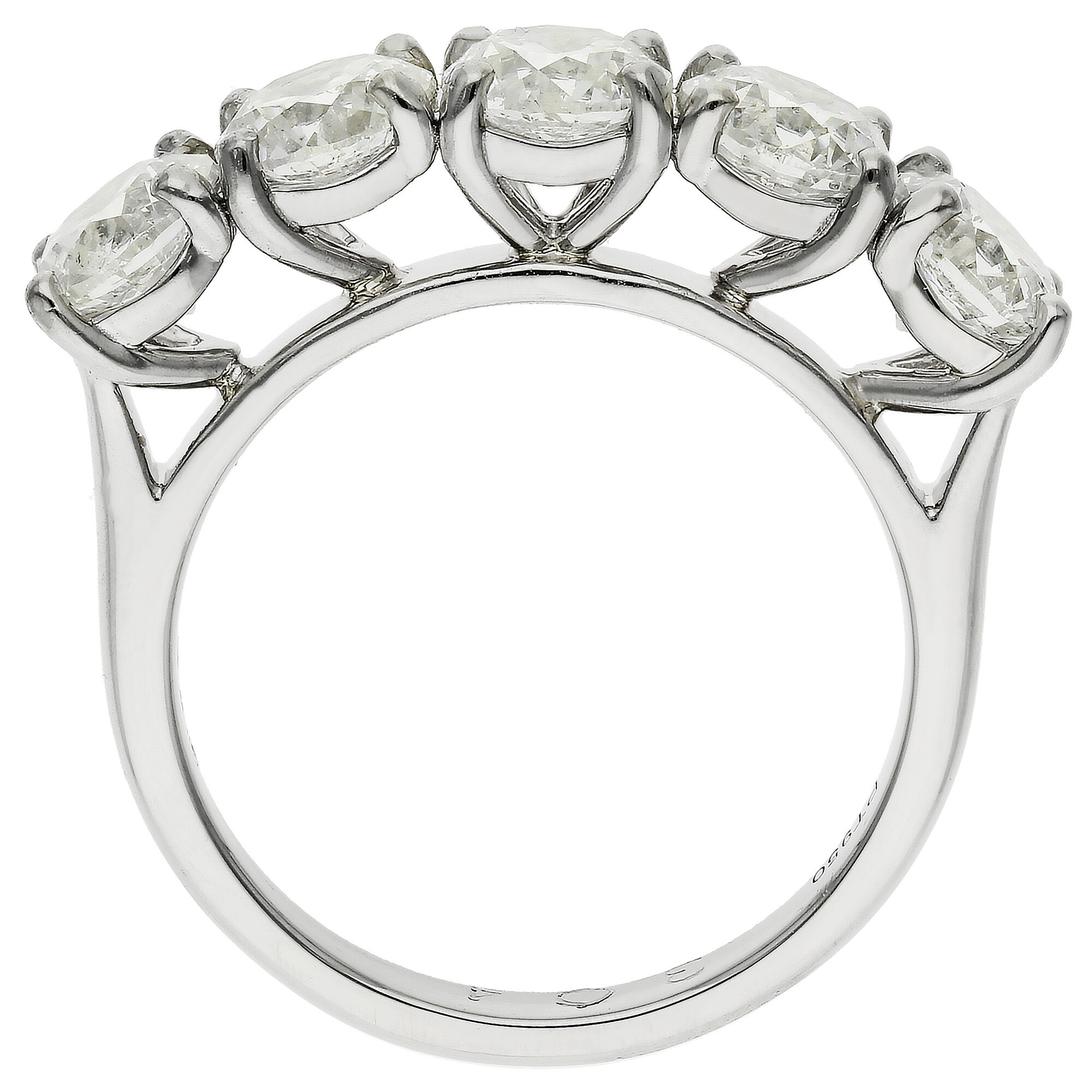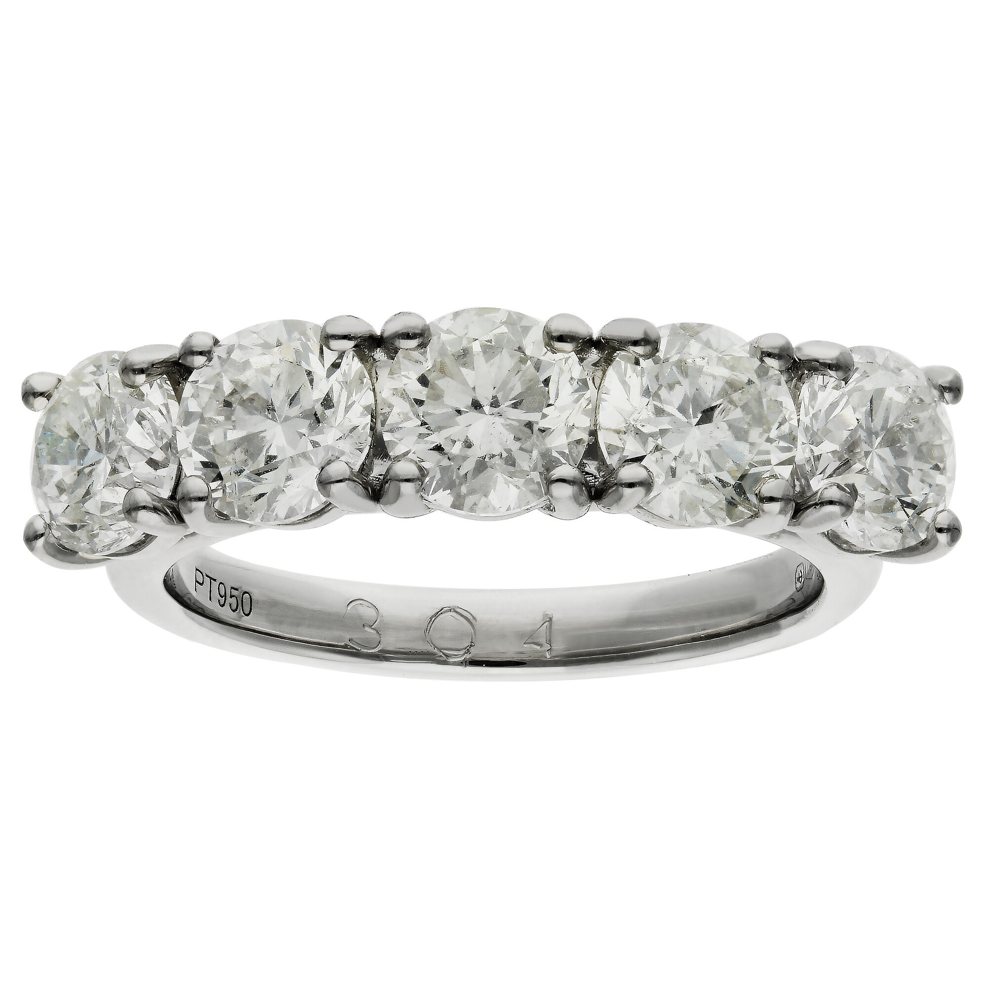 Timeless and elegant, this stunning platinum ring features five dazzling round brilliant cut diamonds with a combined weight of approximately 3.00 carats. Each diamond is individually claw set to enhance its sparkle, creating a continuous row of radiant brilliance across the band. Crafted in polished platinum, the ring offers lasting strength and a naturally bright finish that perfectly complements the sparkle of each stone. Whether chosen as a luxurious engagement ring or a memorable anniversary gift, this five diamond design symbolises strength, unity and everlasting love. The classic arrangement offers a striking presence on the hand while remaining sophisticated and wearable for everyday elegance. A wonderful choice for those who appreciate traditional styling with a touch of brilliance, this ring is a beautiful way to mark life’s most precious moments. Delivered in an elegant presentation box, ready to celebrate your next chapter in style.