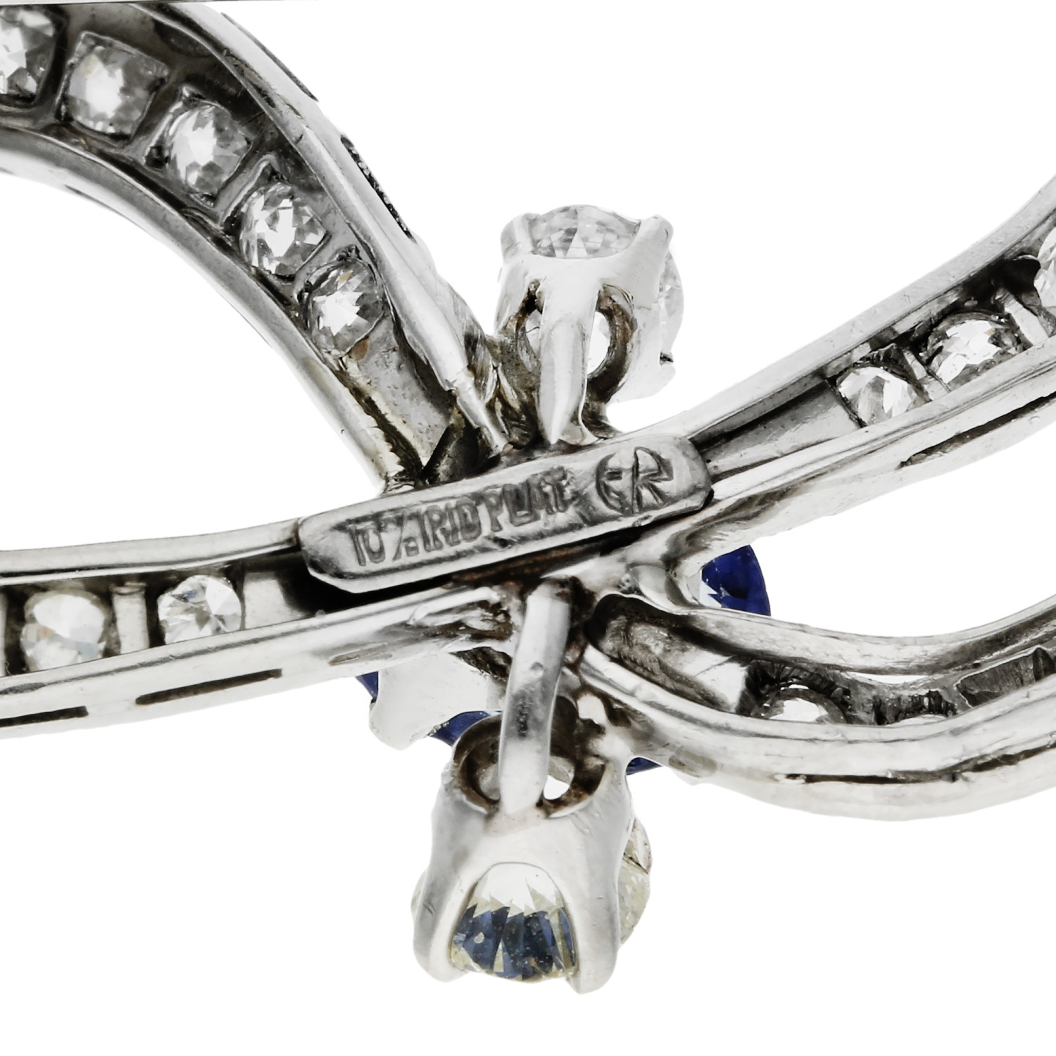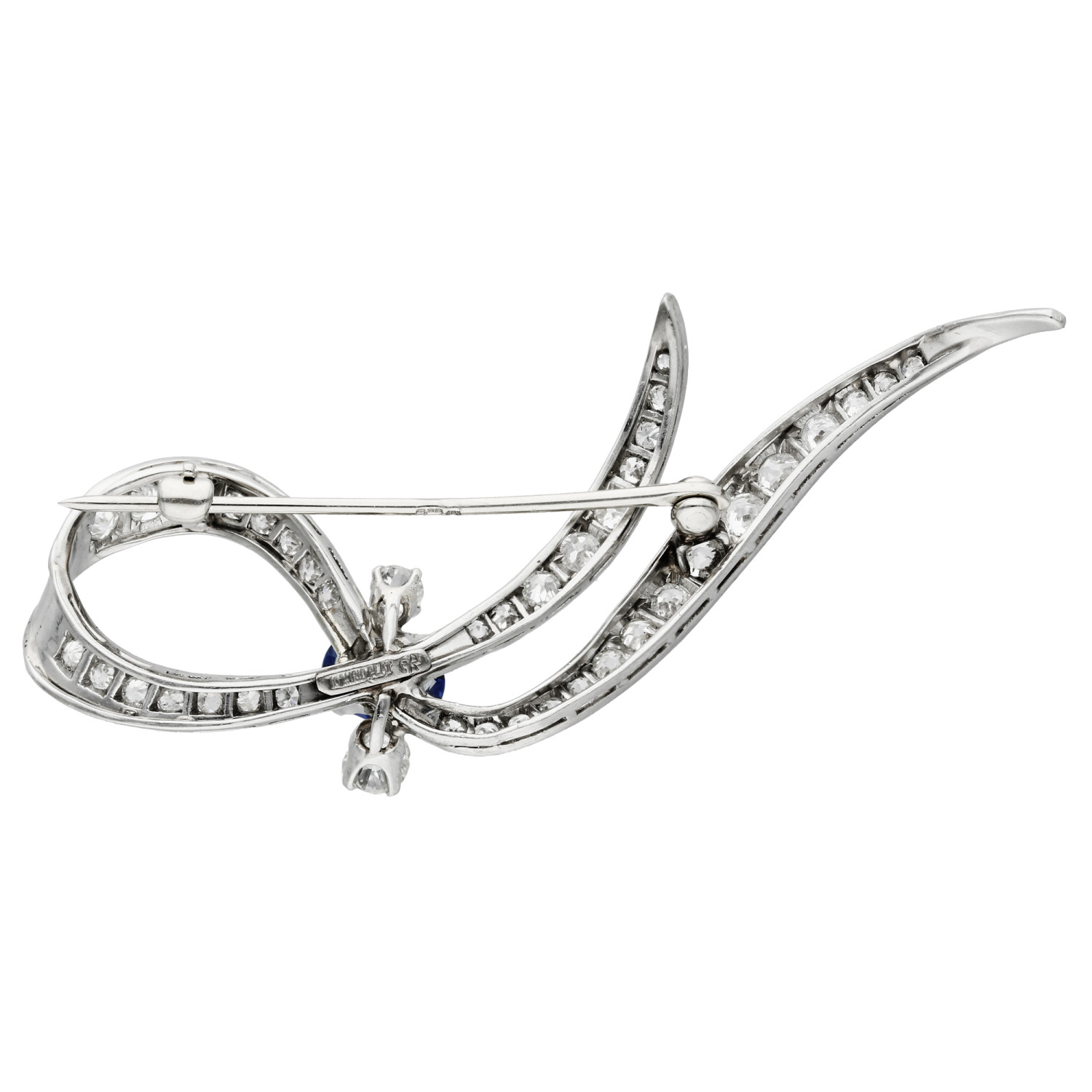Elevate your elegance with our Pre-Owned 14ct White Gold Sapphire & Diamond Brooch, a timeless piece of sophistication and style. This exquisite brooch boasts a ribbon design, featuring diamonds set in platinum, creating a scintillating display of brilliance and grace.