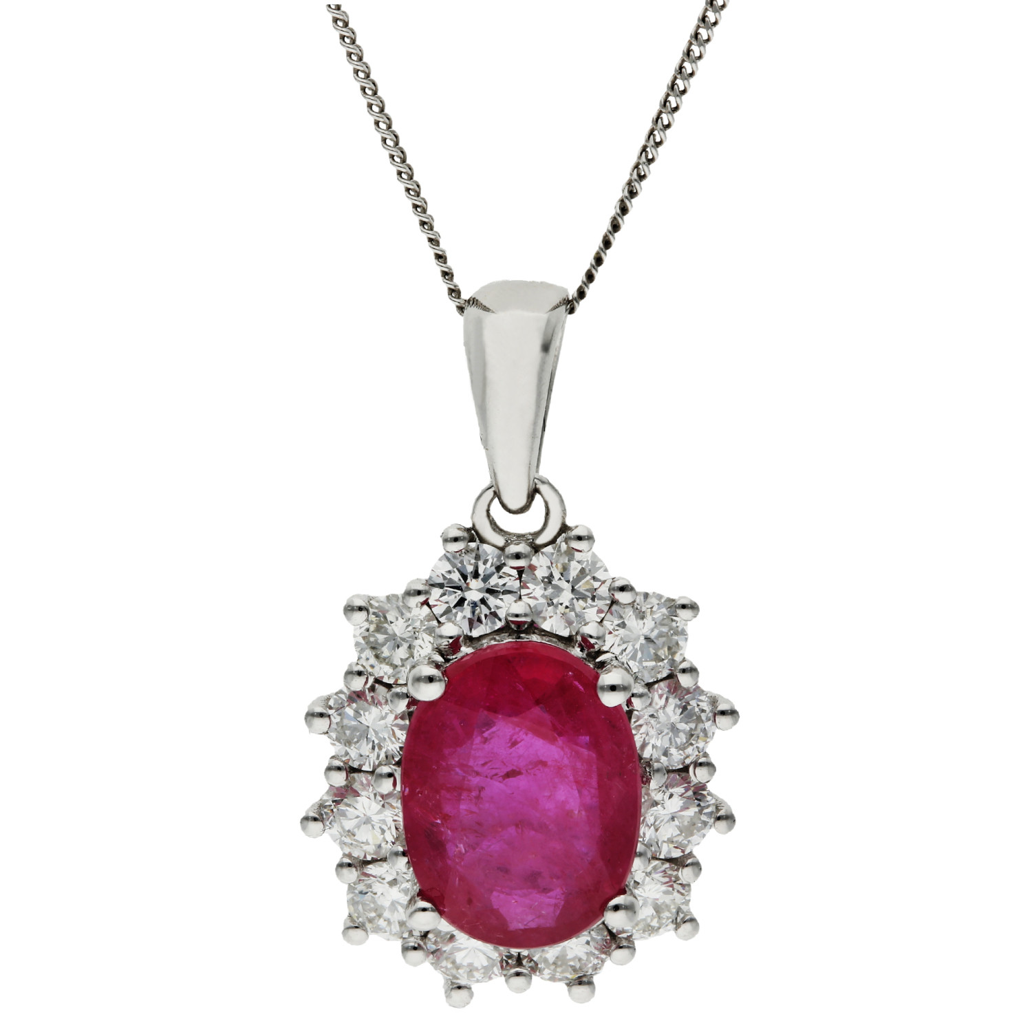 18ct White Gold Diamond & 1.00ct Ruby Pendant