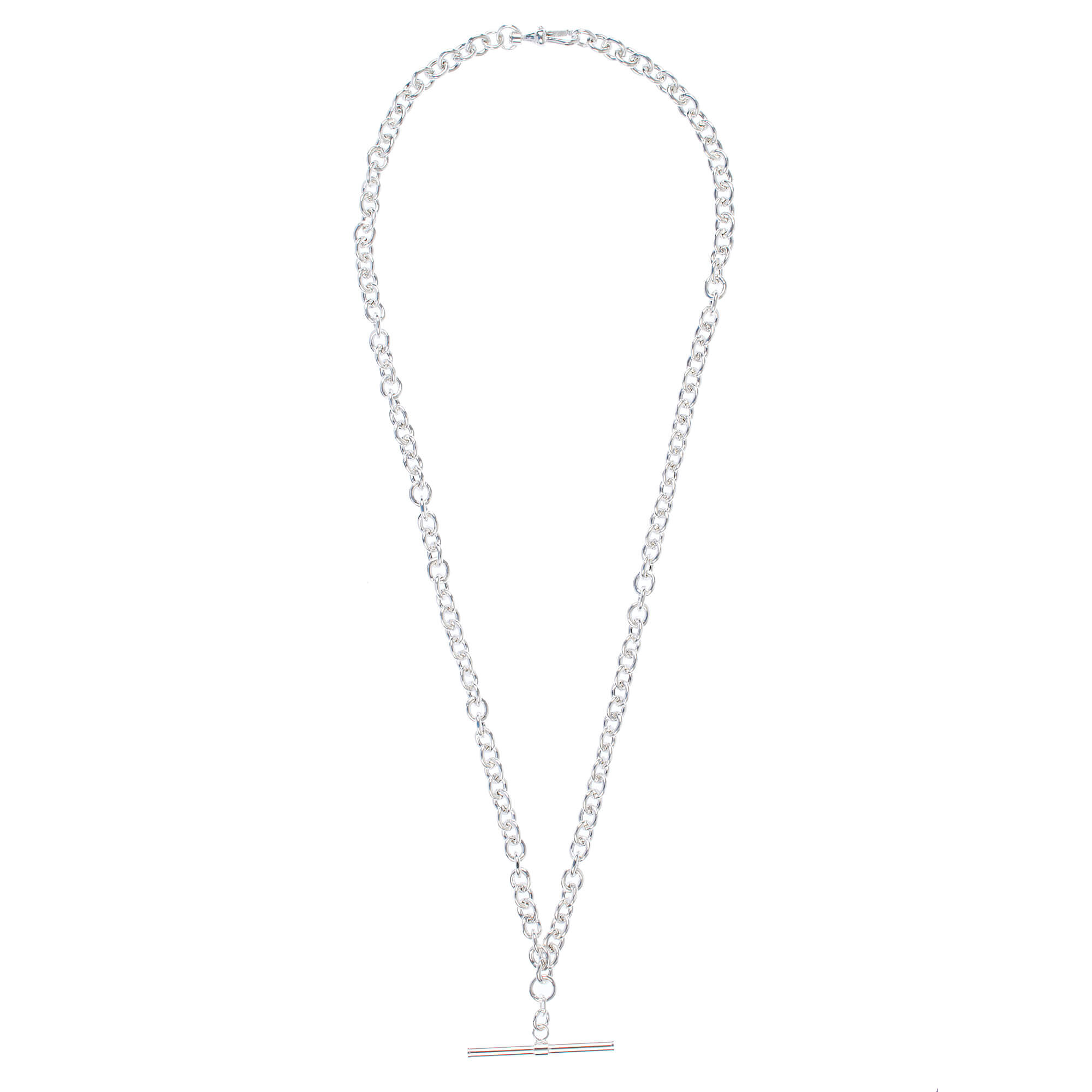 Ideal as a gift or a personal indulgence, this sterling silver necklace combines exceptional craftsmanship with timeless style. Whether layered for a modern twist or worn alone as a statement piece, the chunky chain and T-bar pendant make this necklace a must-have for those who appreciate bold yet refined jewellery. A classic accessory for any occasion.
