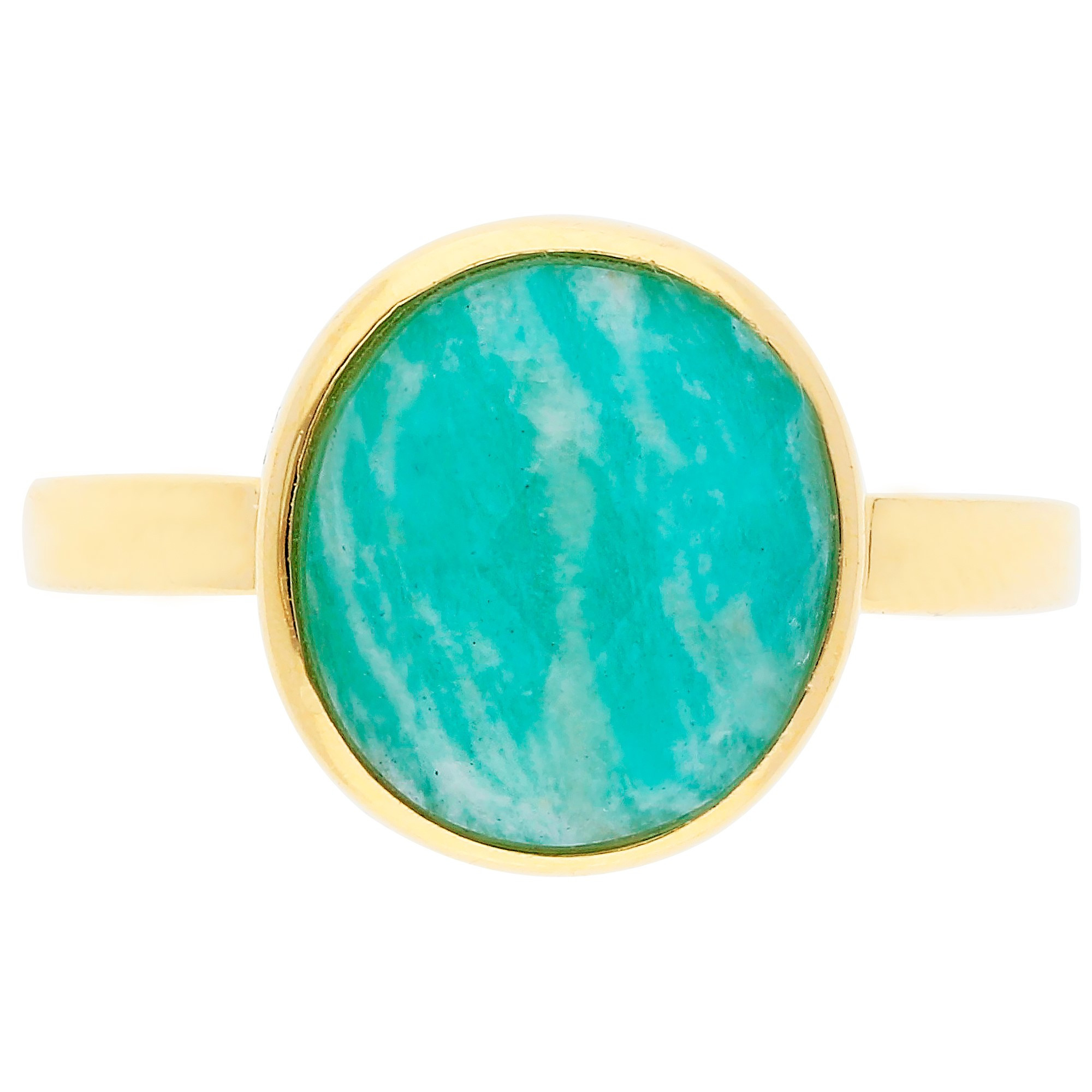 Introducing our chic Gold Plated Sterling Silver Amazonite Ring, a perfect blend of classic design and contemporary aesthetics. The centrepiece of this elegant ring is a beautifully faceted amazonite, set in a bezel that highlights its captivating blue-green colour. Crafted on a simple gold plated silver shank, the ring offers a sleek look that is both stylish and comfortable to wear. Whether it's an addition to your daily wear or a special accent for evening occasions, this amazonite ring promises to be a cherished piece in your jewellery collection, bringing a touch of serene elegance to your ensemble. Size K